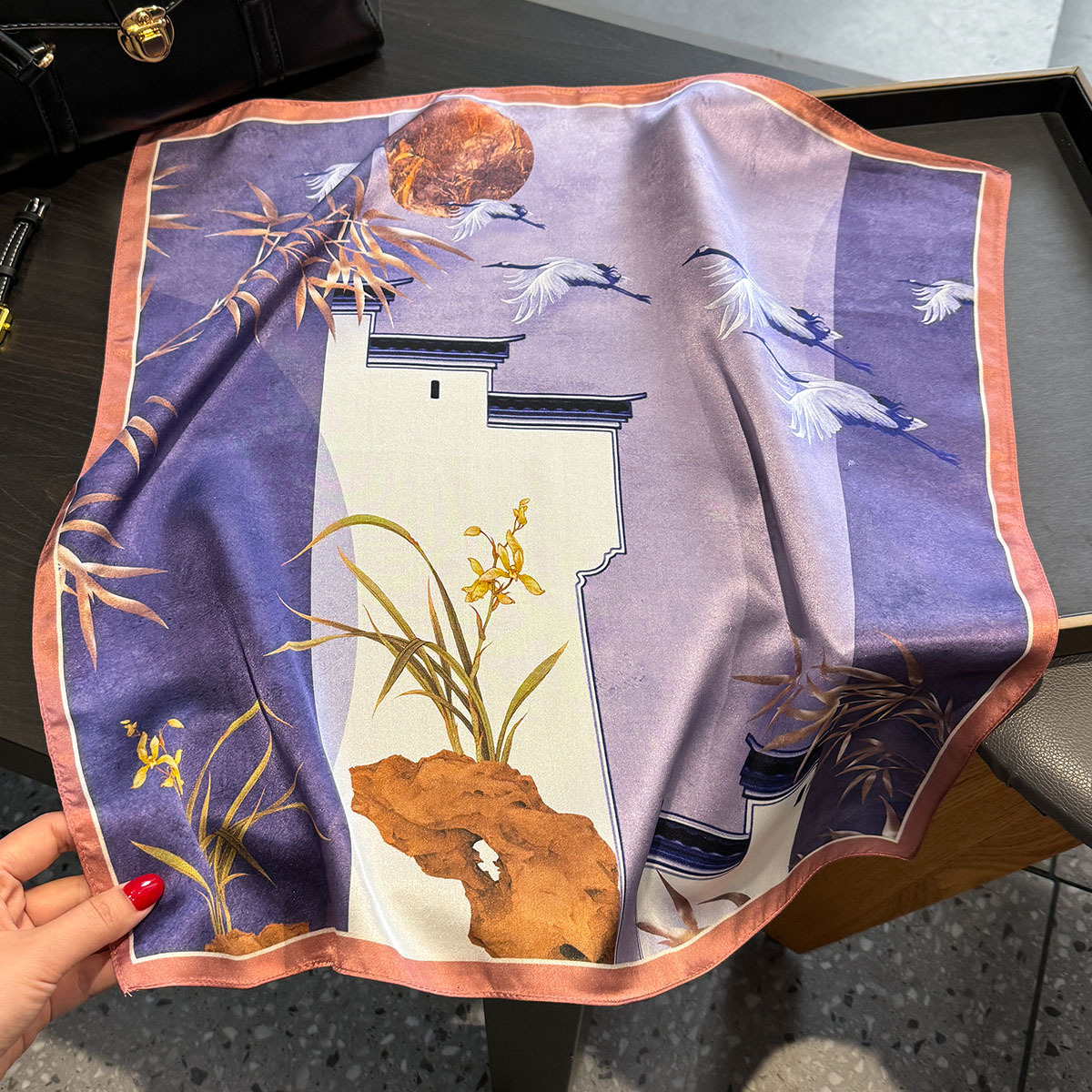 한국 스타일 새 인쇄 실크 작은 광장 스카프 여성의 봄과 여름 얇은 고급 뽕나무 실크 스카프 목스토어 가기