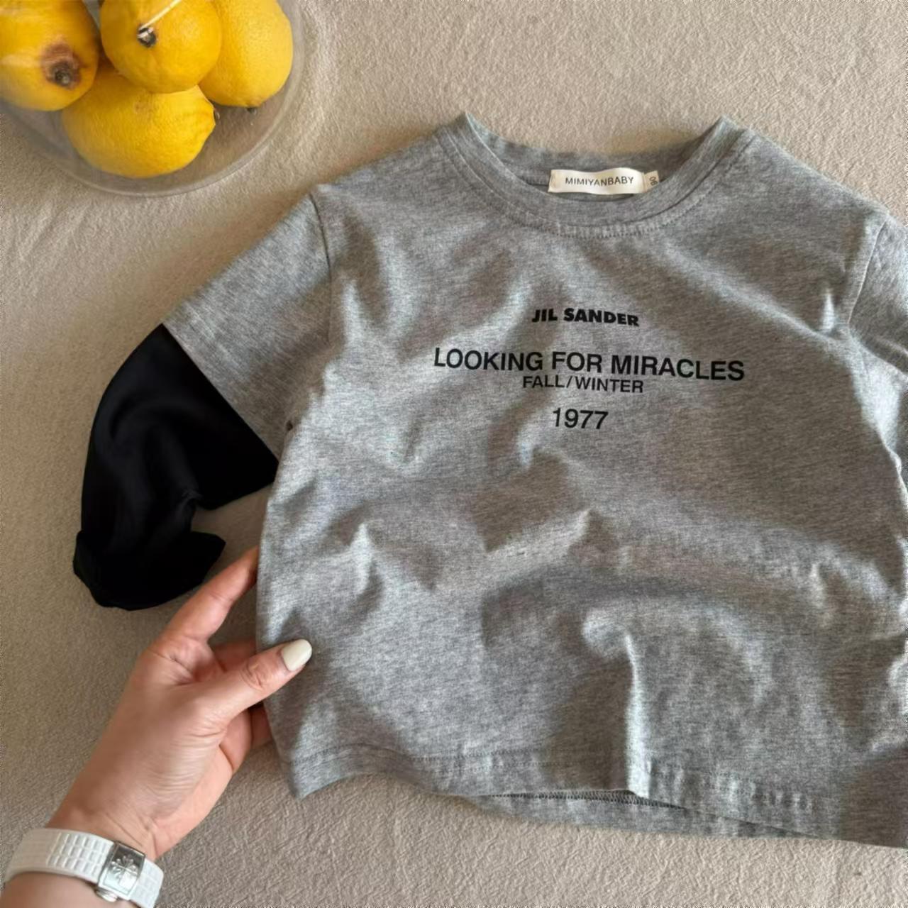 봄 2025 새로운 어린이 패션 아우터 소년 소녀를위한 가짜 투피스 스웨터 패션 느슨한 올매치 유행 잘 생긴