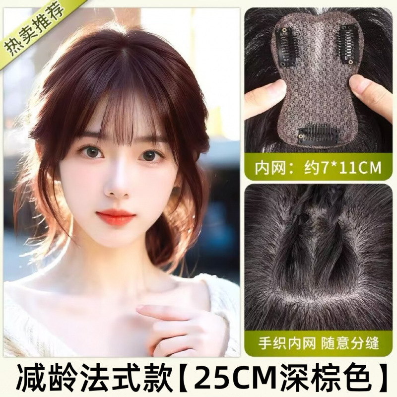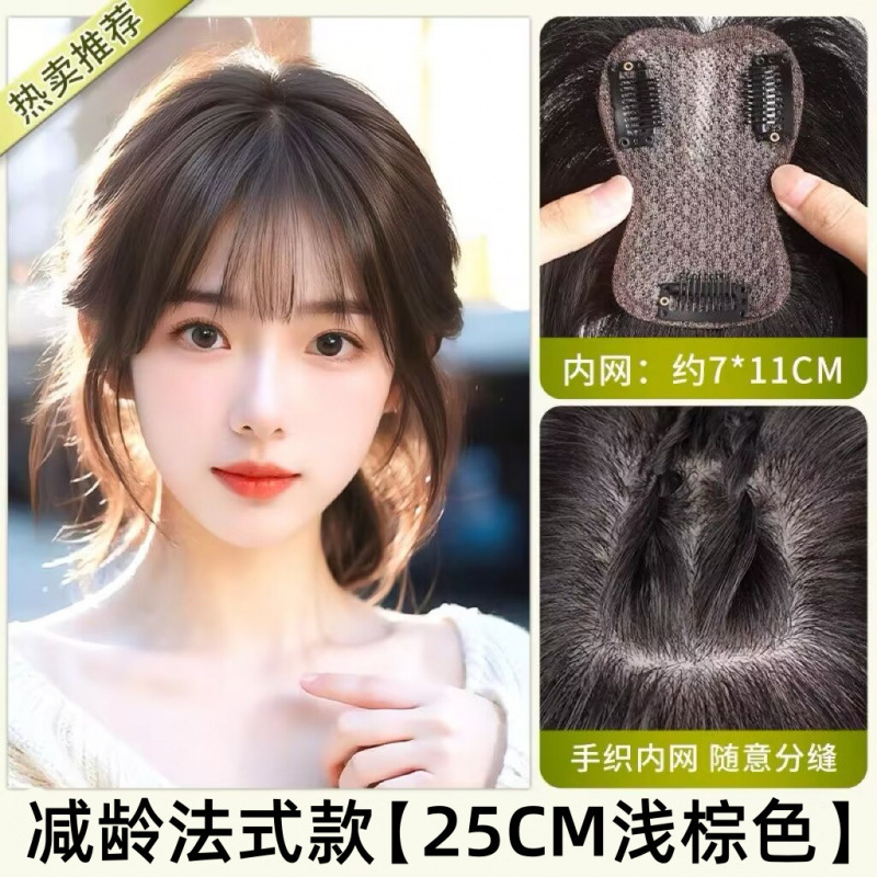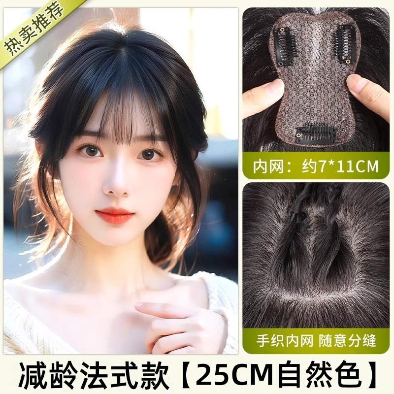 가발 톱 재발행 추가 헤어 볼륨 시뮬레이션 푹신한 높은 두개골 탑 커버 화이트 헤어 라이트와 트레이스 뱅이 가발스토어 가기