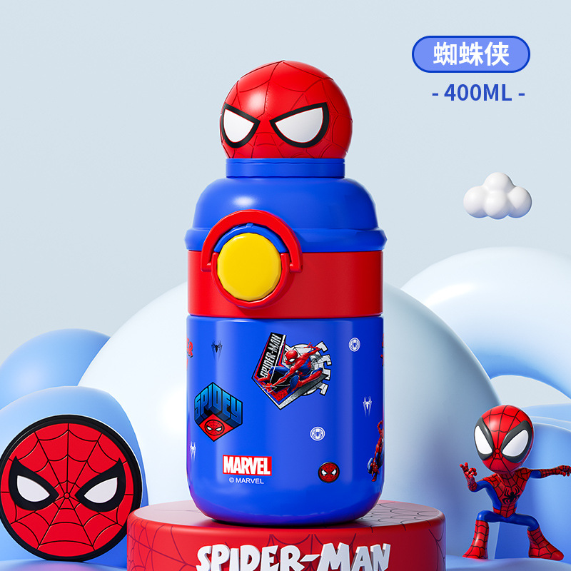 마블 스파이더 맨 보온병 식품 학년 316 스테인레스 스틸 어린이 물 컵 남성 학생 더블 마시는 밀짚 컵스토어 가기