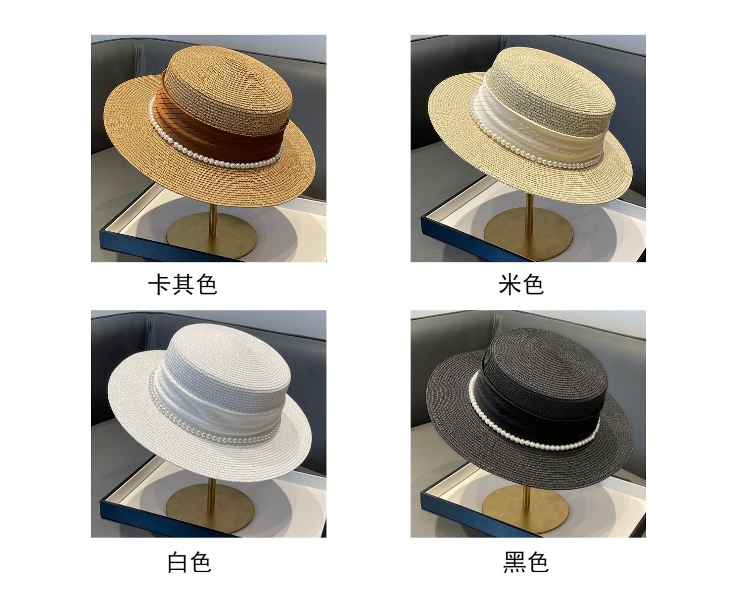 프랑스 스타일 사교계 스타일 플랫 탑 모자 2023 새로운 여름 우아한 진주 밀짚 해변 여성용 햇빛 모자