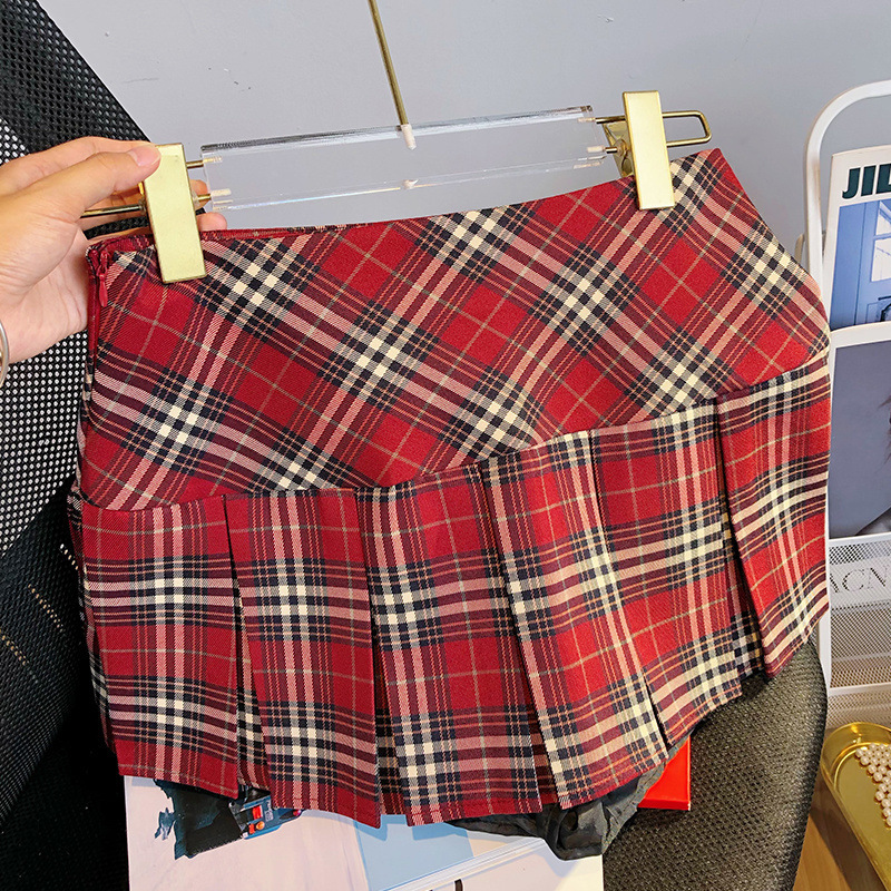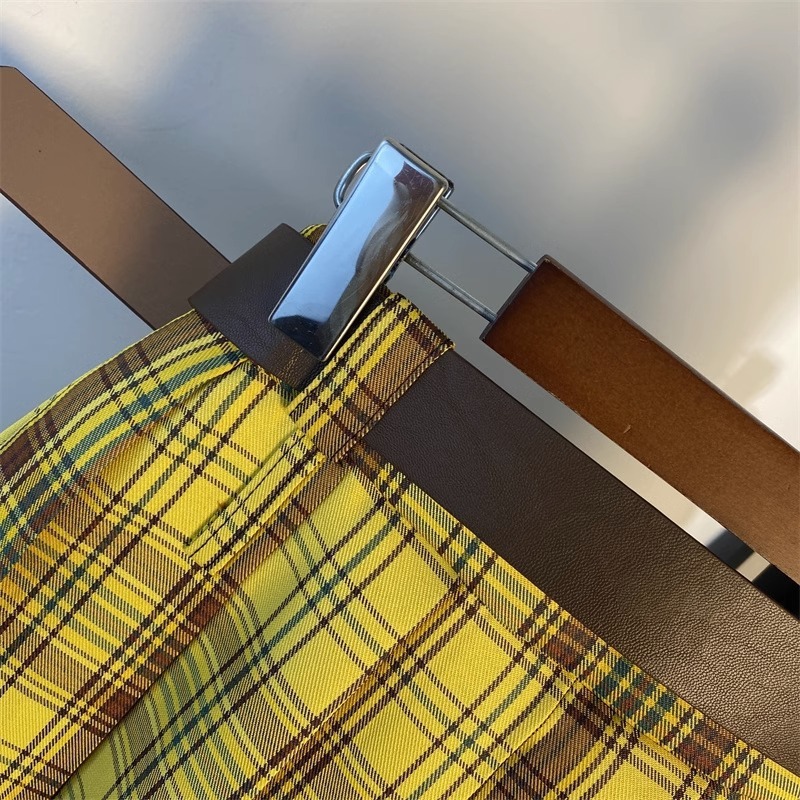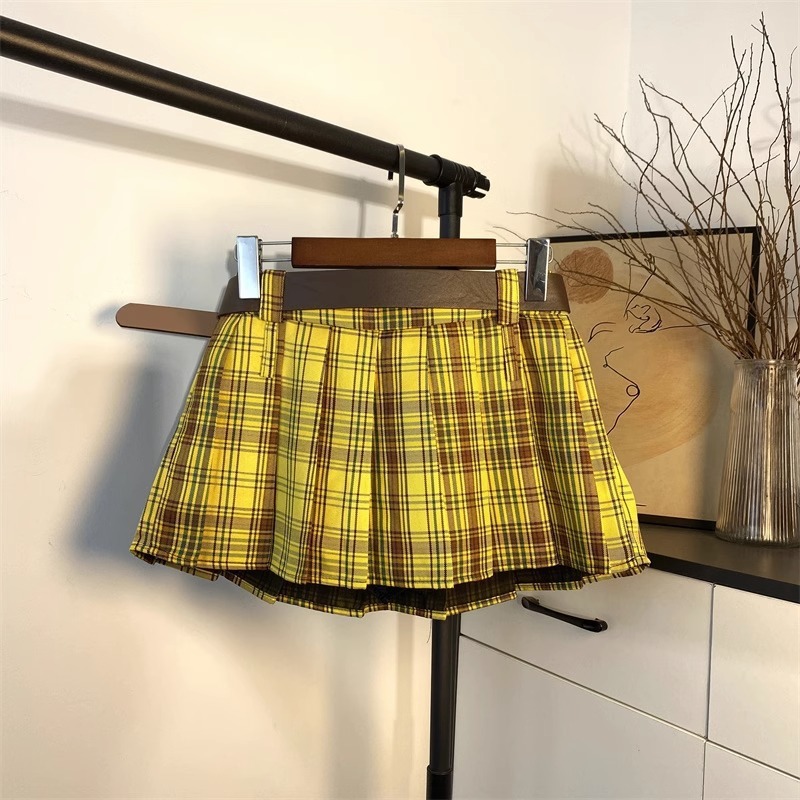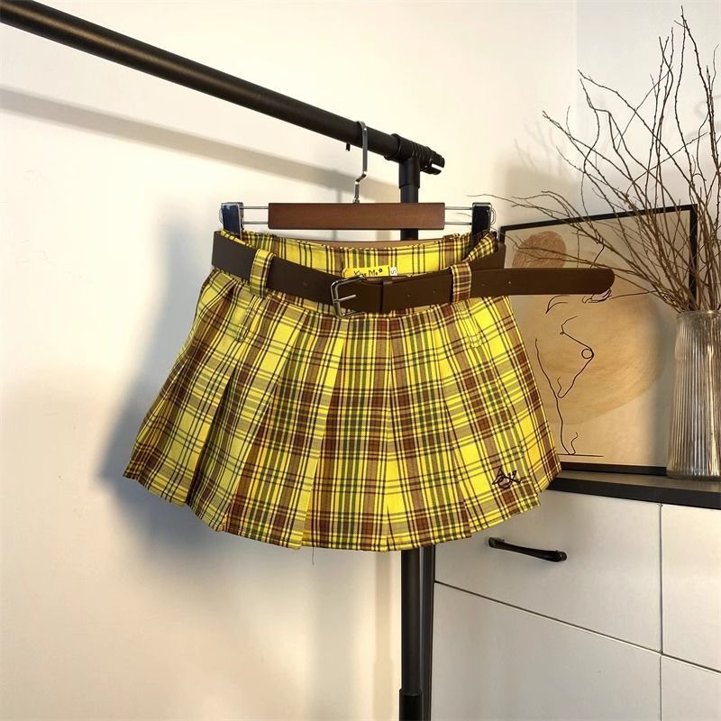 미국 스타일 짧은 치마 격자 무늬 스커트 여성 여름 스커트 벨트 새로운 높은 허리 슬리밍 A-라인 주름 치마 노란색 격자 무늬 스커트스토어 가기