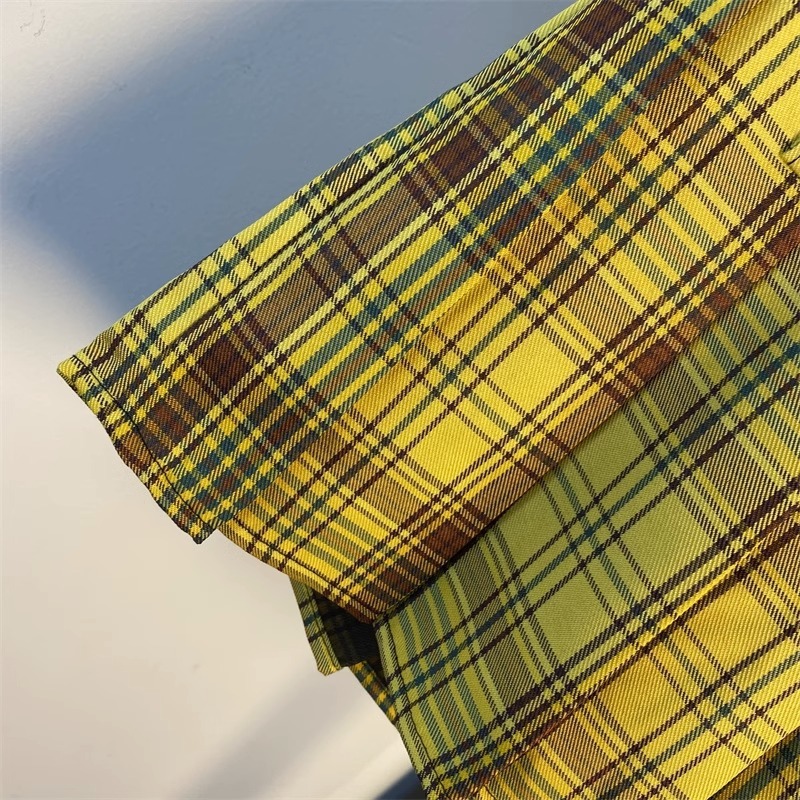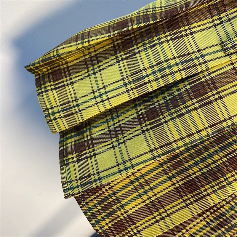 미국 스타일 짧은 치마 격자 무늬 스커트 여성 여름 스커트 벨트 새로운 높은 허리 슬리밍 A-라인 주름 치마 노란색 격자 무늬 스커트