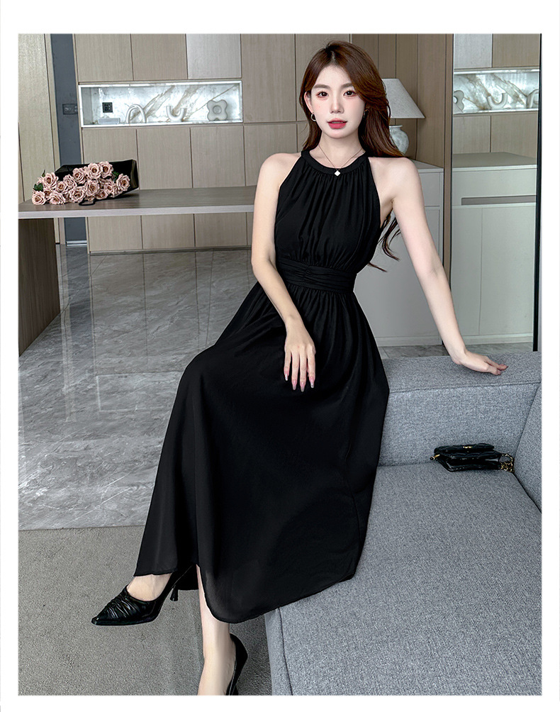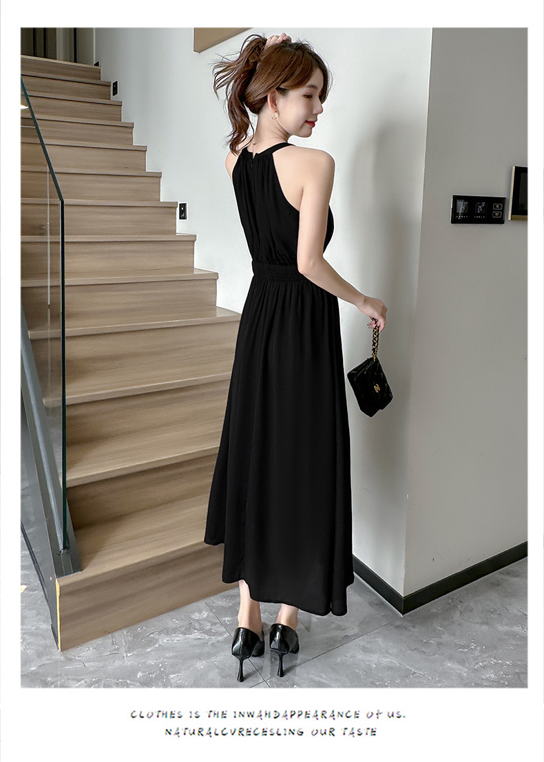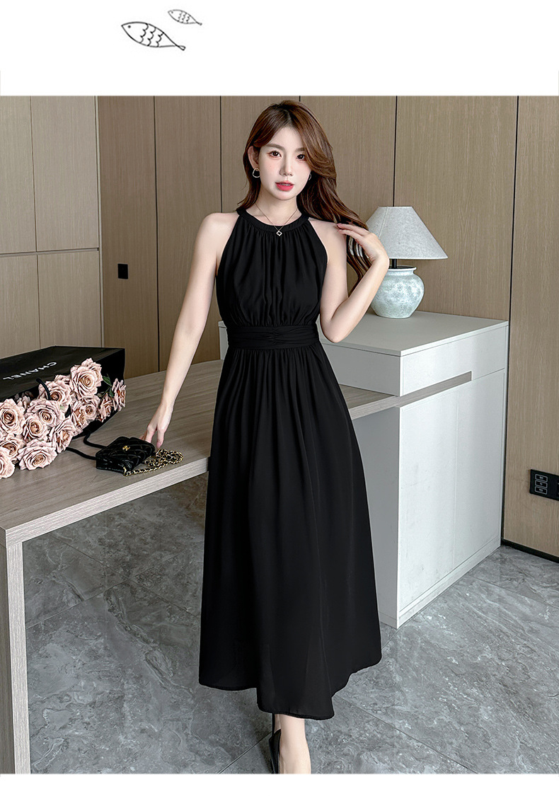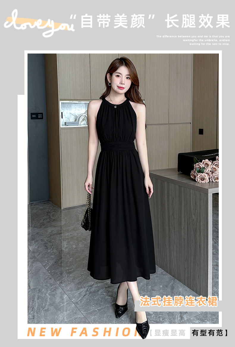 2025 년 새로운 살구색 쉬폰 원피스 봄과 여름 부드러운 기질 통근 허리 A 라인 스커트 민소매 목 원피스스토어 가기