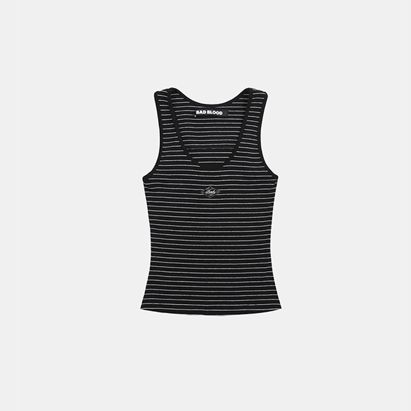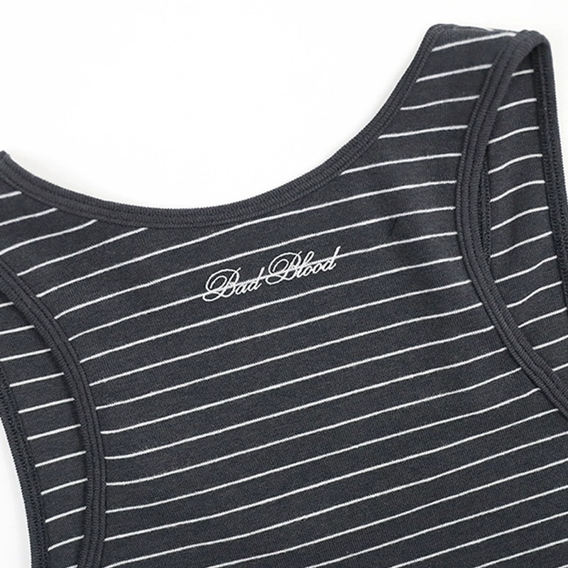 한국 badblood 미국 스타일 섹시한 스포츠 탑 틈새 슬림 슬리밍 슬림 스파이스 소녀 스트라이프 조끼스토어 가기