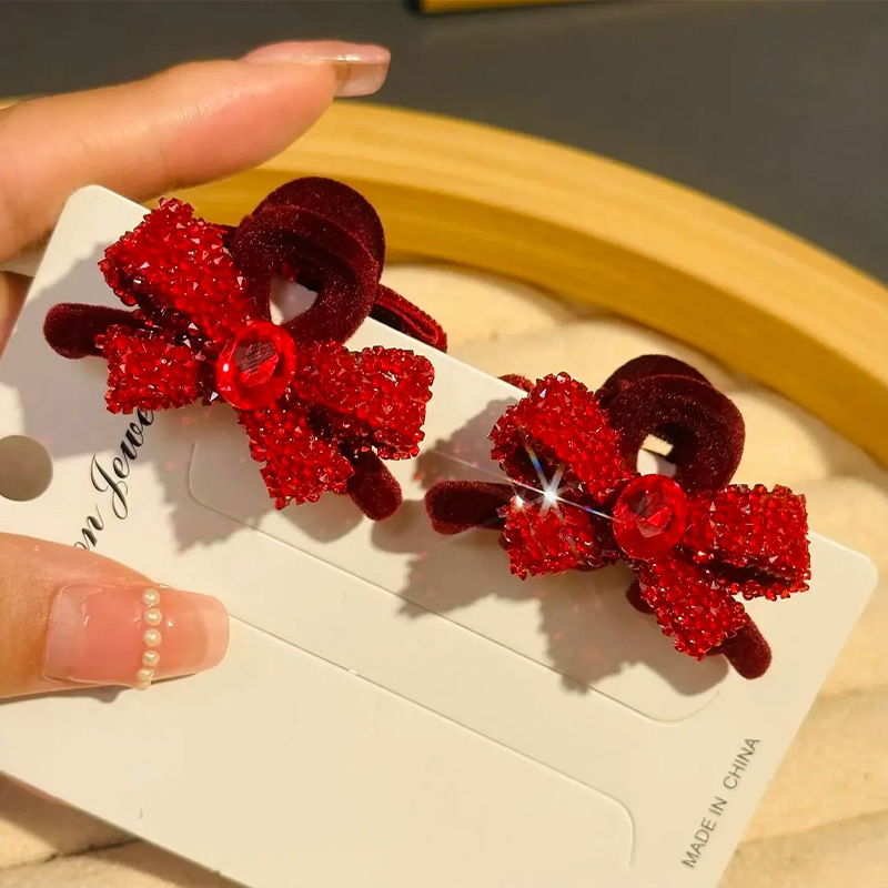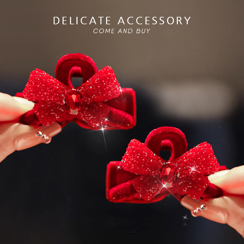 새해 작은 횡령 클립 소녀의 전면 프린지 사이드 클립 2025 새로운 빨간 머리띠 여아의 공주 헤어 액세서리