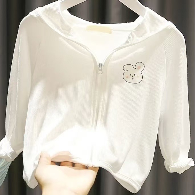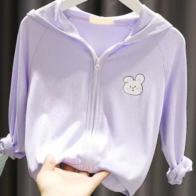 봄과 여름 귀여운 작은 코트 드레싱 슈퍼 소프트 통기성 아이스 실크 에어컨 셔츠 아기 소녀 어린이 아기 태양 보호 옷