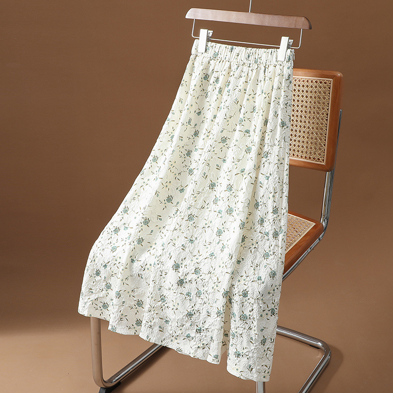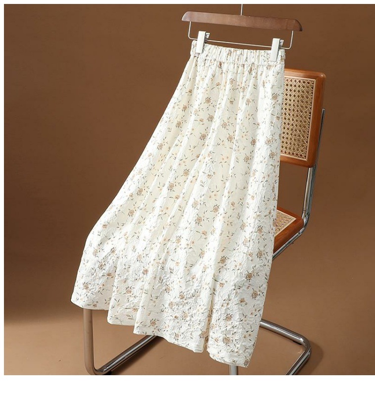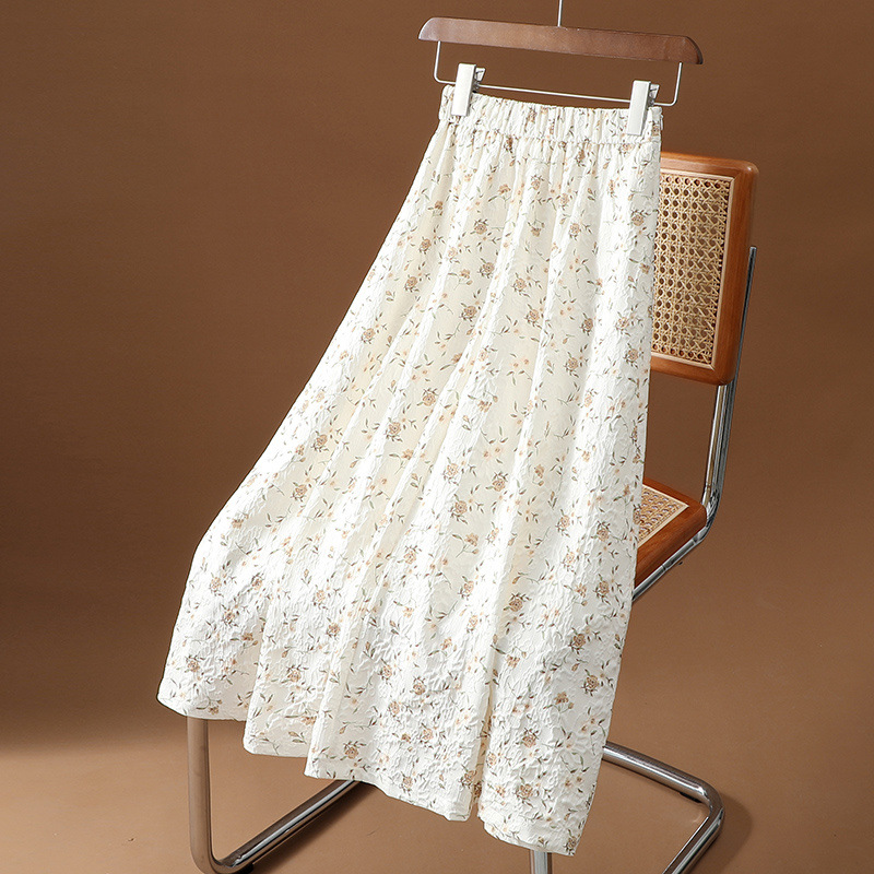 여성용 꽃무늬 스커트 2025 봄 여름 신작 프린트 하이웨이스트 A라인 스커트 슬림핏 스커트 중간 길이 플리츠 스커트