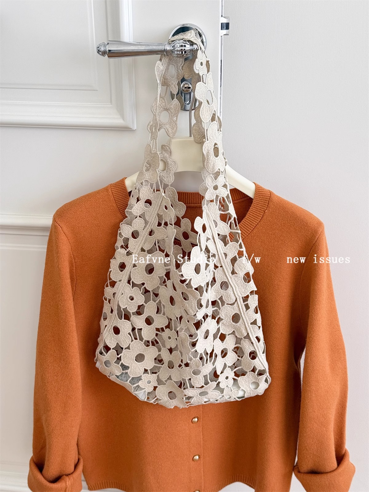 빈티지 홍콩 스타일 웨스턴 스타일 레이스 예술적 할로우 꽃 헝겊 가방 여성용 독특한 어깨 언더암 토트 백스토어 가기