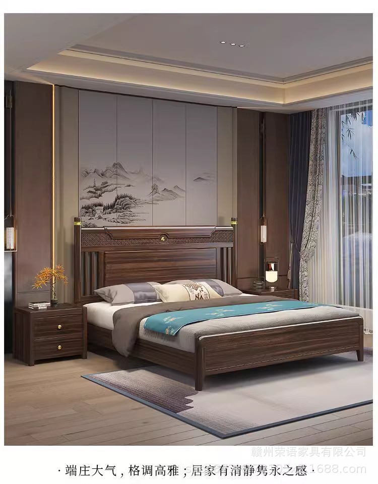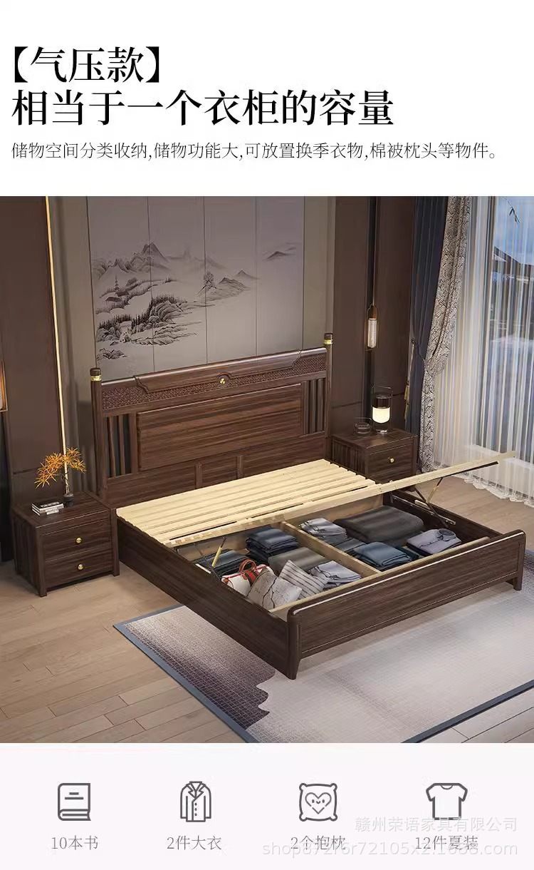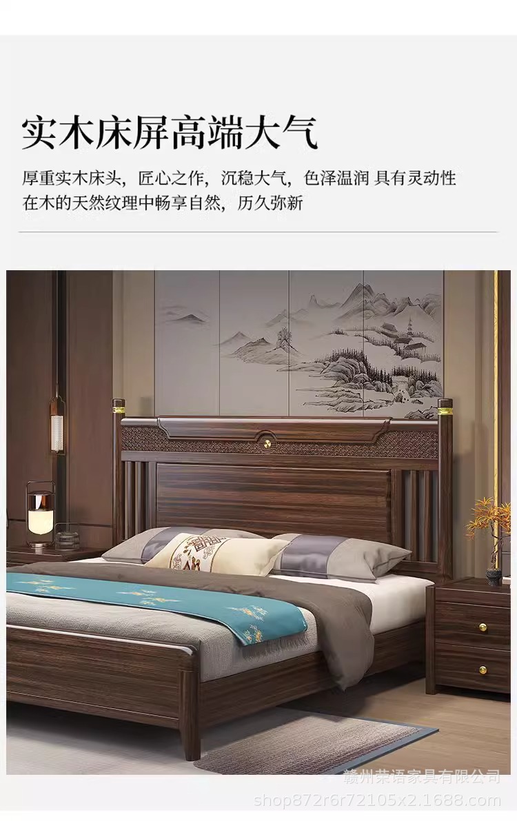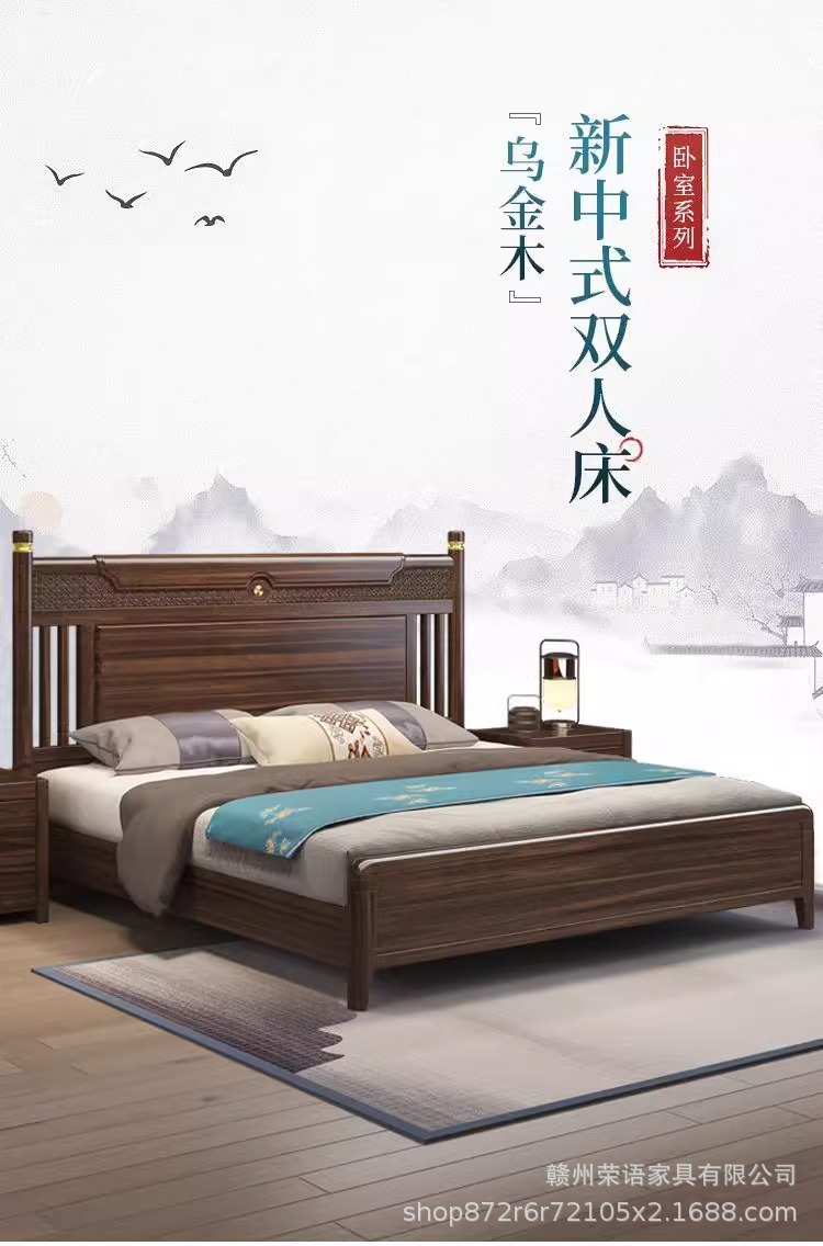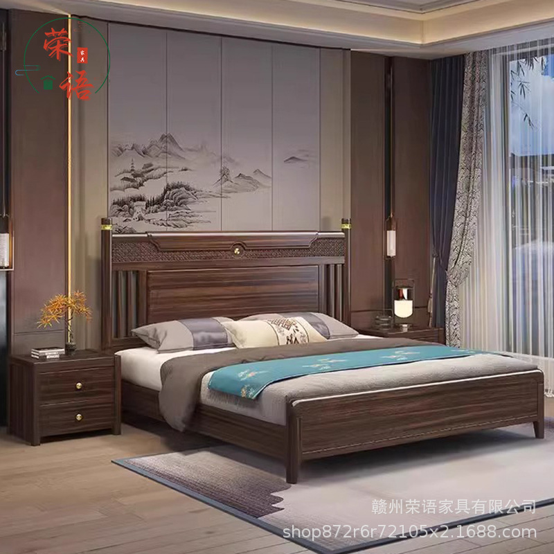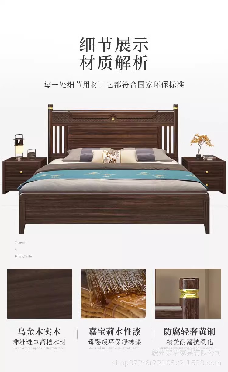 에보니 솔리드 우드 침대 1.8 미터 마스터 침실 더블 침대 하이 엔드 새로운 중국 스타일 대형 아파트 침실 가구 보관 웨딩 침대스토어 가기