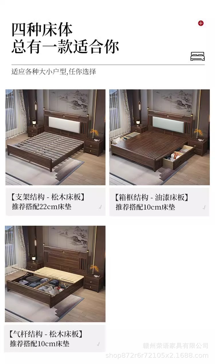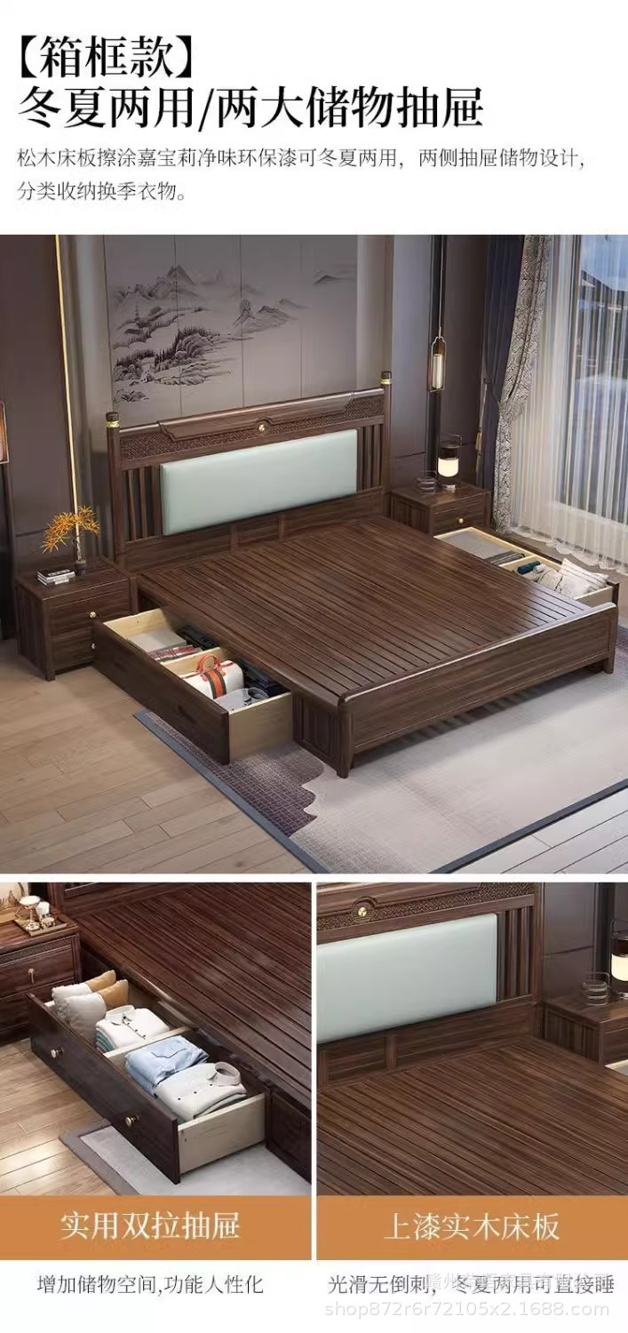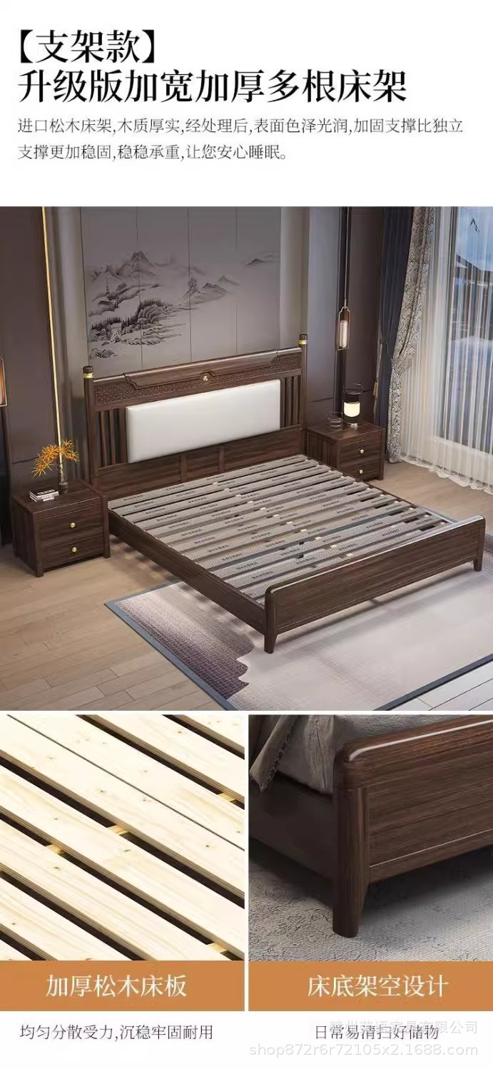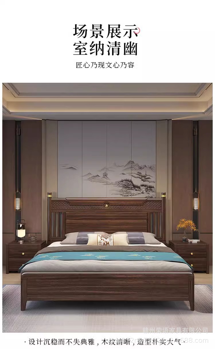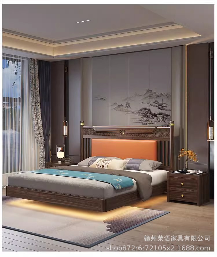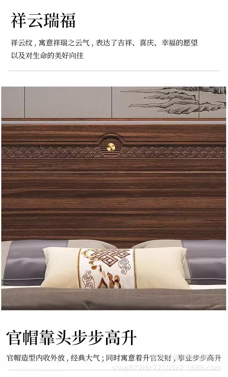 에보니 솔리드 우드 침대 1.8 미터 마스터 침실 더블 침대 하이 엔드 새로운 중국 스타일 대형 아파트 침실 가구 보관 웨딩 침대스토어 가기