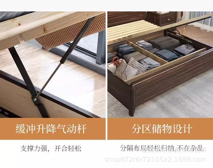 에보니 솔리드 우드 침대 1.8 미터 마스터 침실 더블 침대 하이 엔드 새로운 중국 스타일 대형 아파트 침실 가구 보관 웨딩 침대