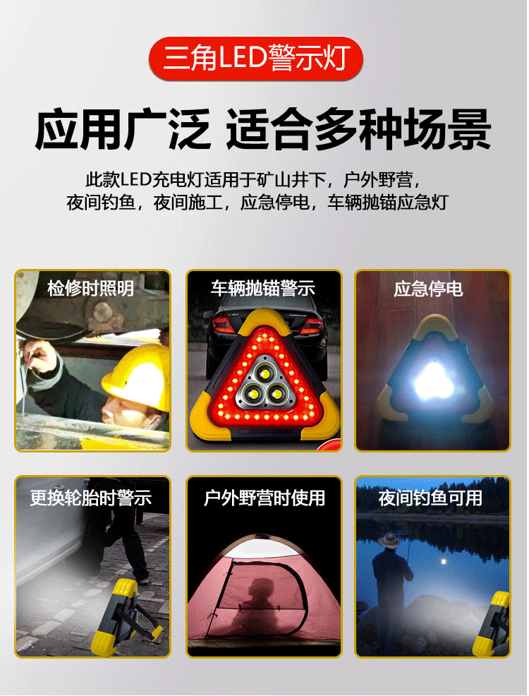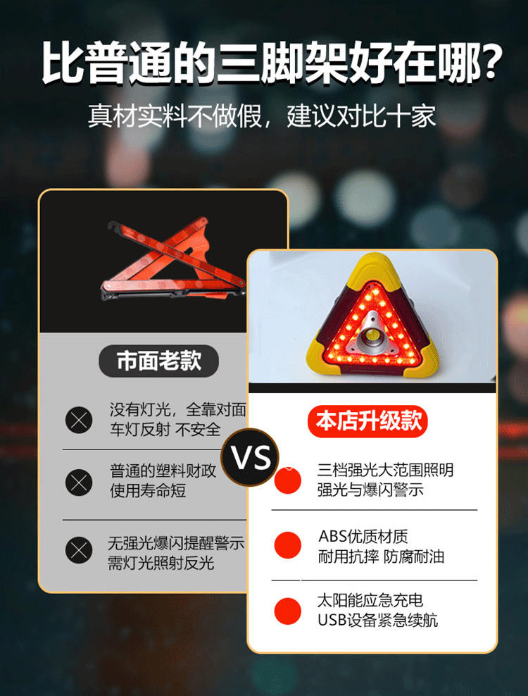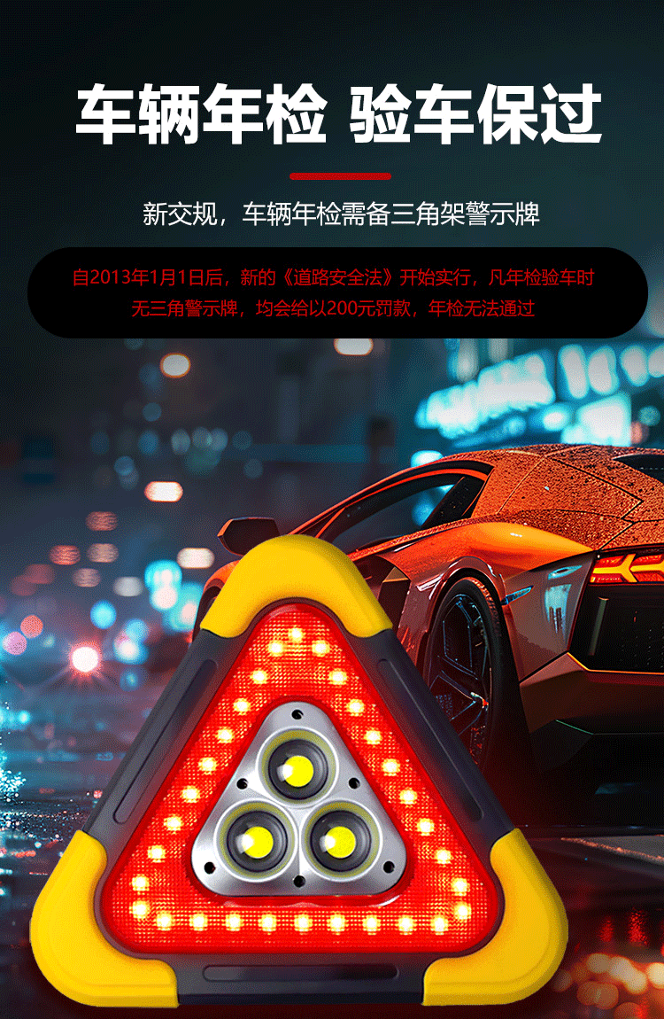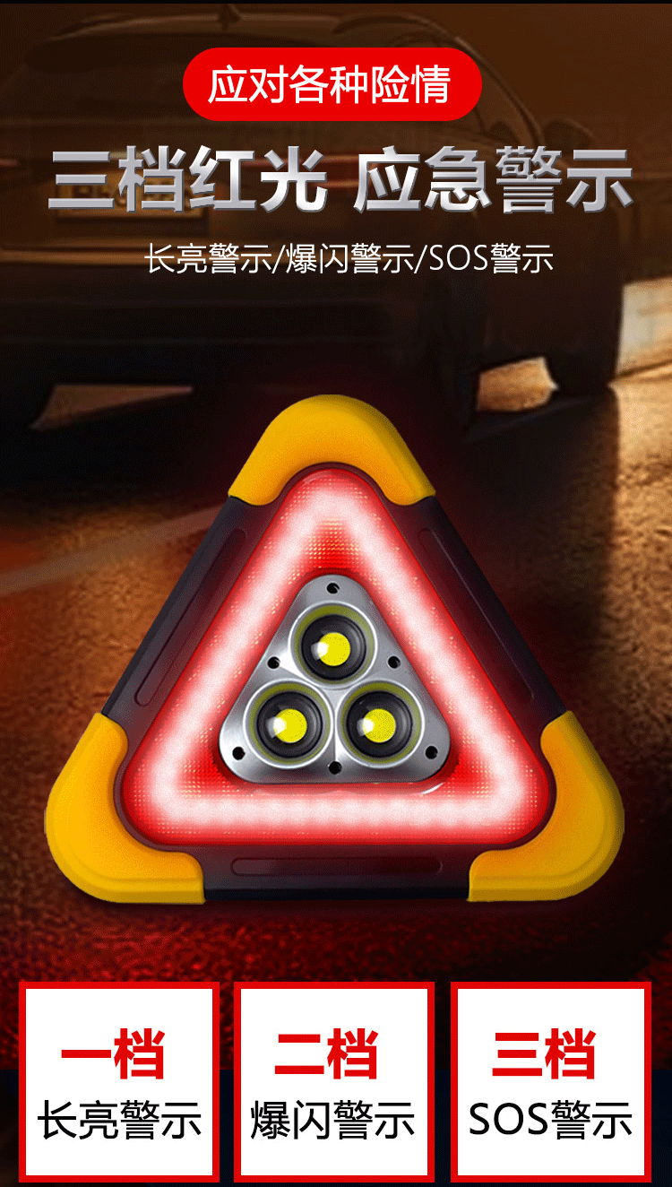 삼각대 경고등 다기능 자동차 비상 조명 태양 충전 자동차 삼각형 안전 경고 표시 zk스토어 가기