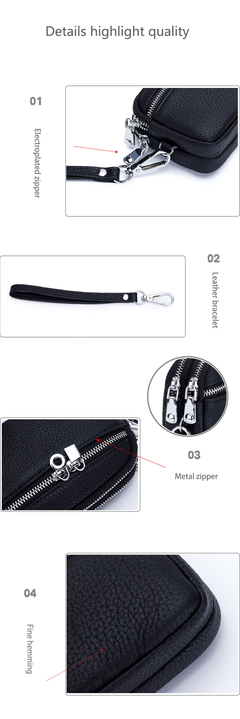 2. 触摸。使用手直接接触皮具用品,感觉皮的手感,一般皮具表面具有大小不一样的