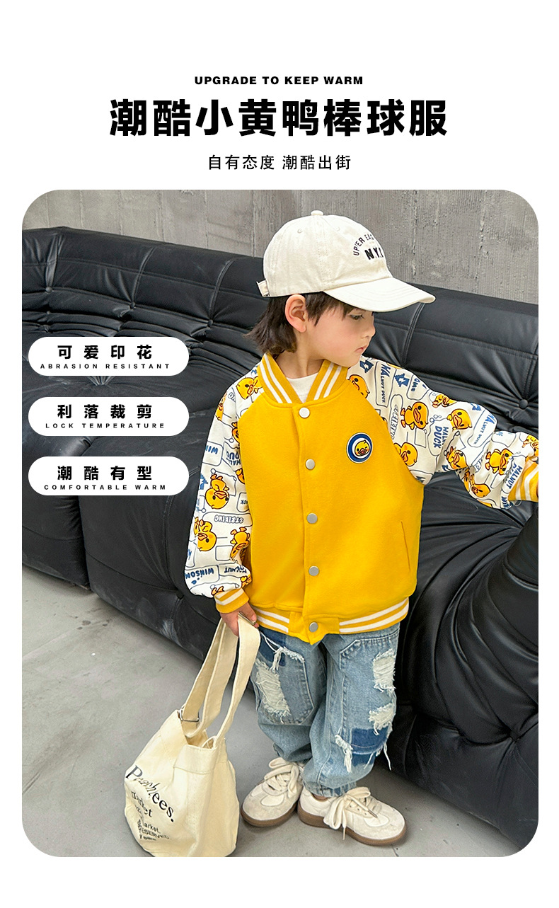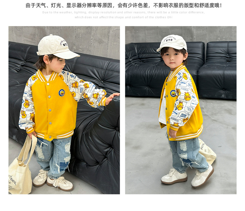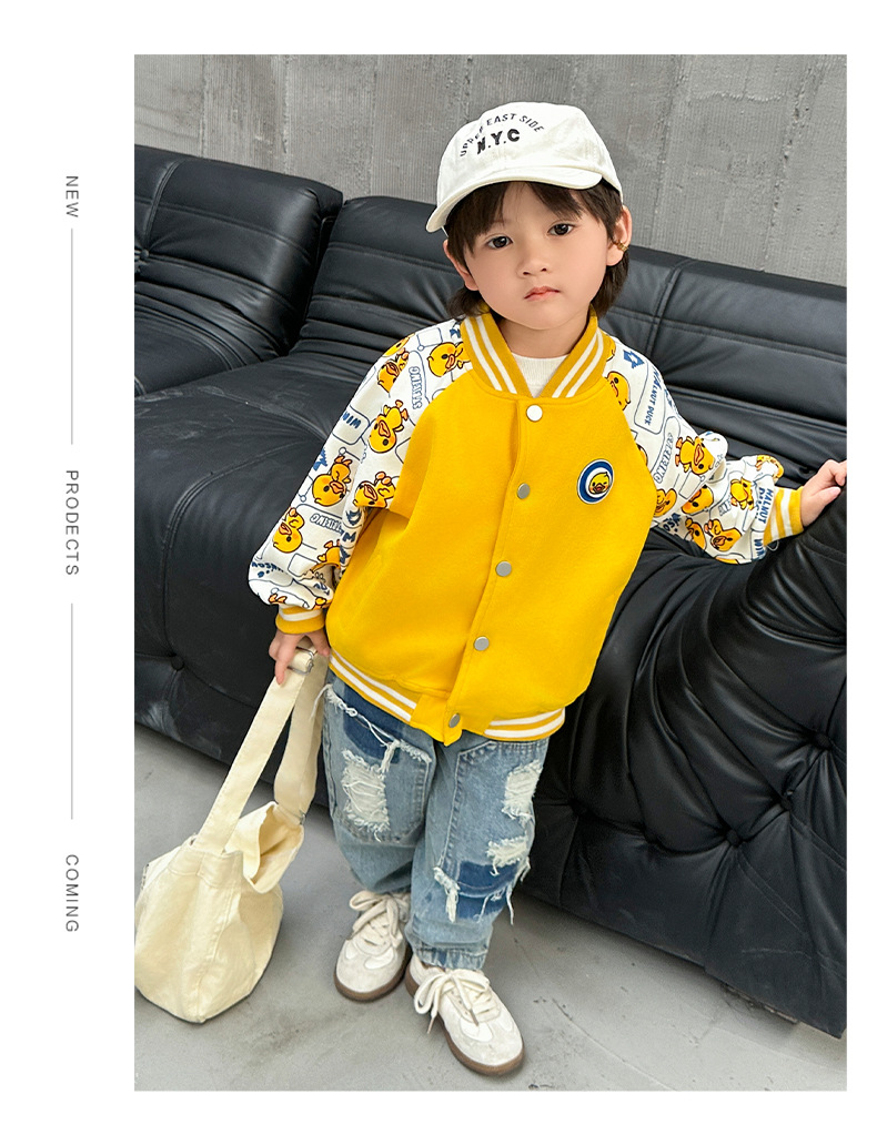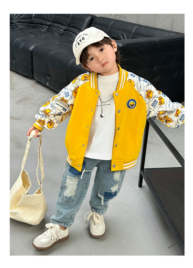 작은 노란 오리 소년 야구 세트 봄과 가을 2025 새로운 어린이 서양식 탑 아기 봄 소녀 코트스토어 가기