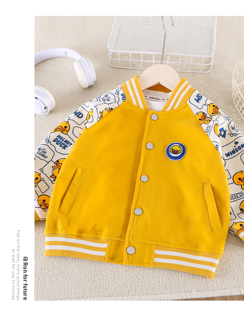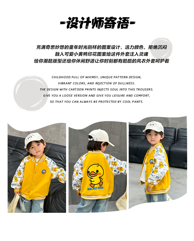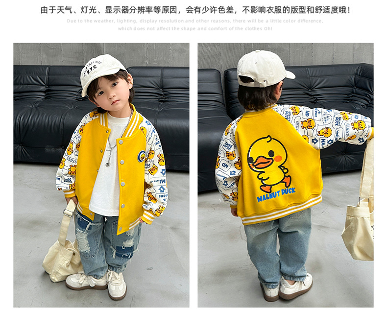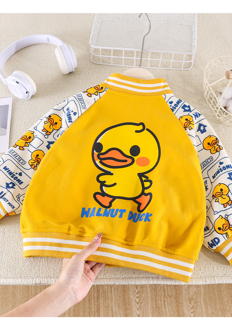 작은 노란 오리 소년 야구 세트 봄과 가을 2025 새로운 어린이 서양식 탑 아기 봄 소녀 코트