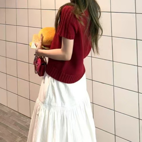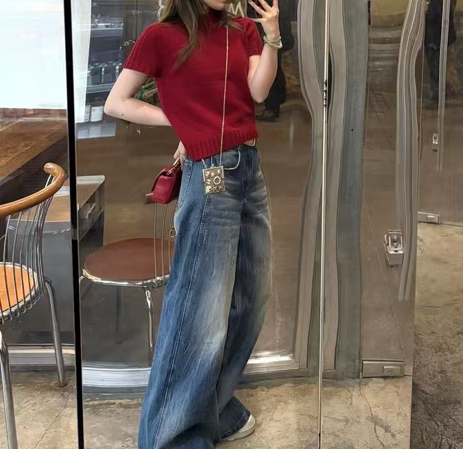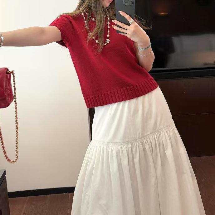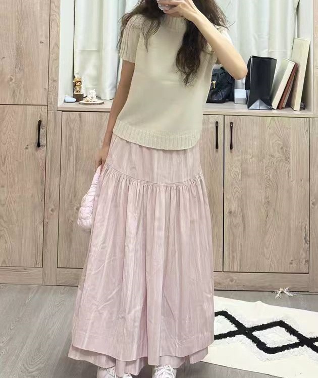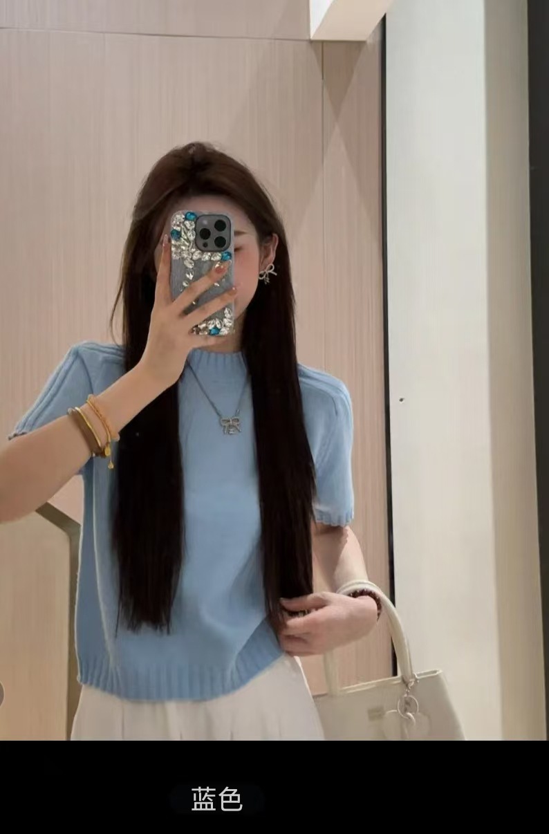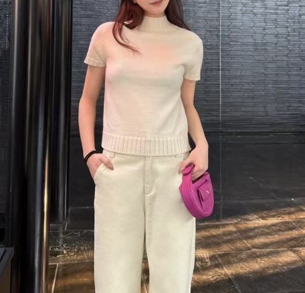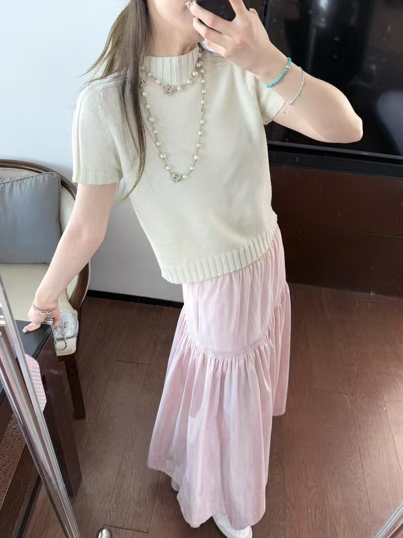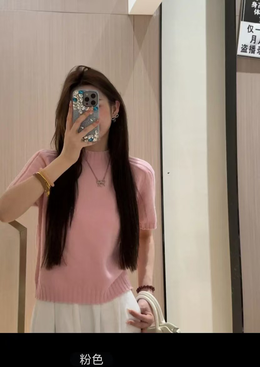 2025 한국식 봄과 여름 신형 하이 엔드 니트 스웨터 반팔 외부 착용 반 높이 목 슬림 스웨터 코트 여자 탑스토어 가기