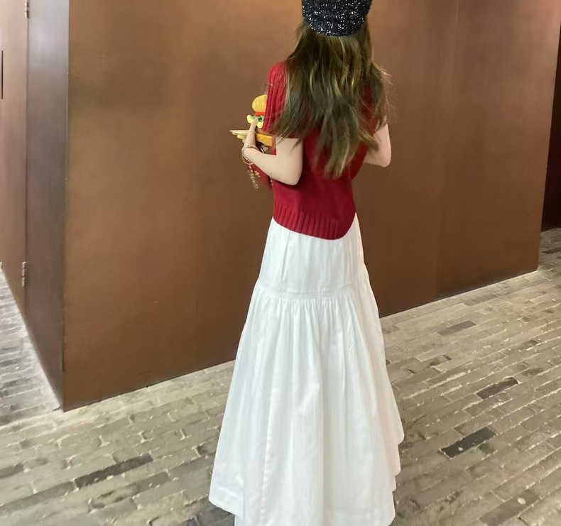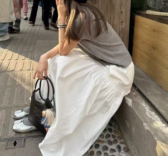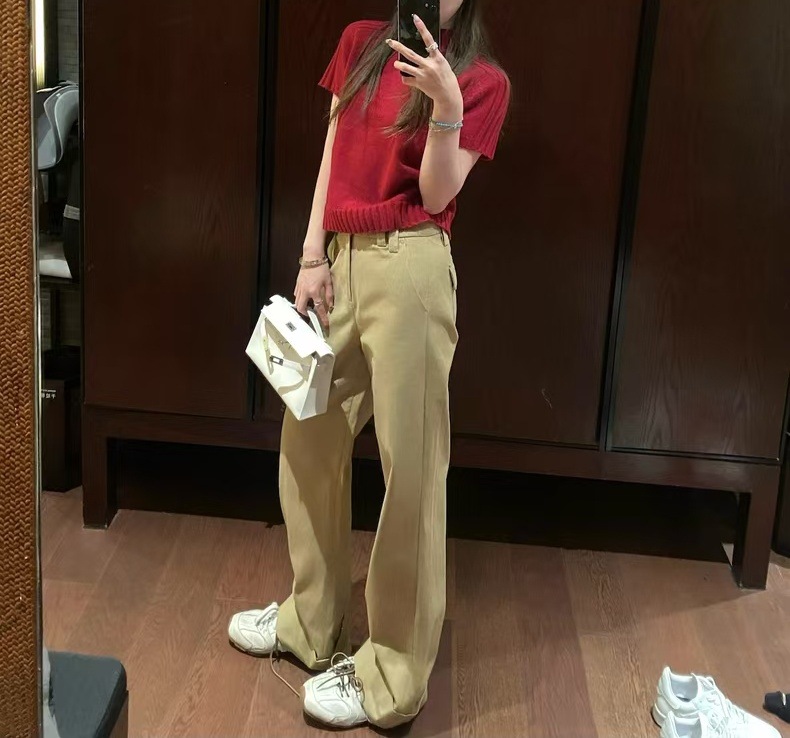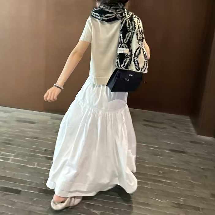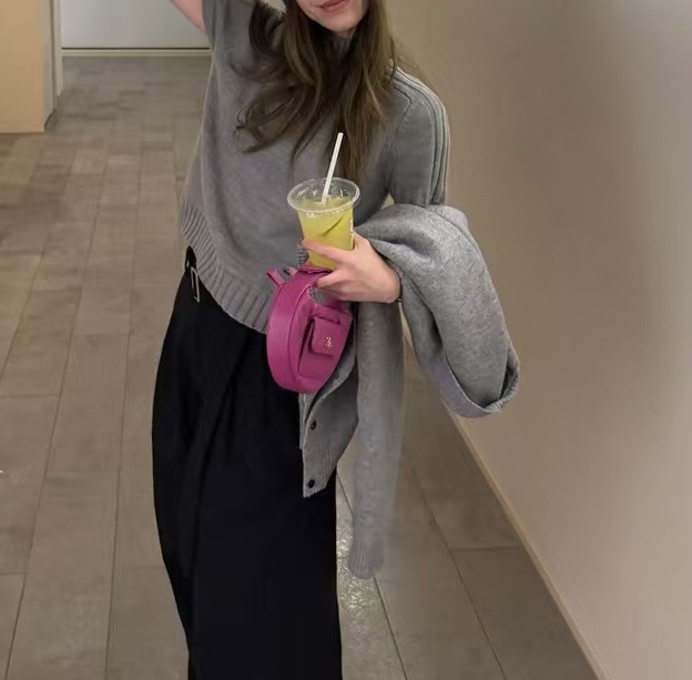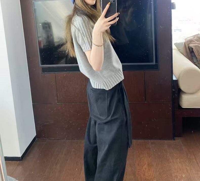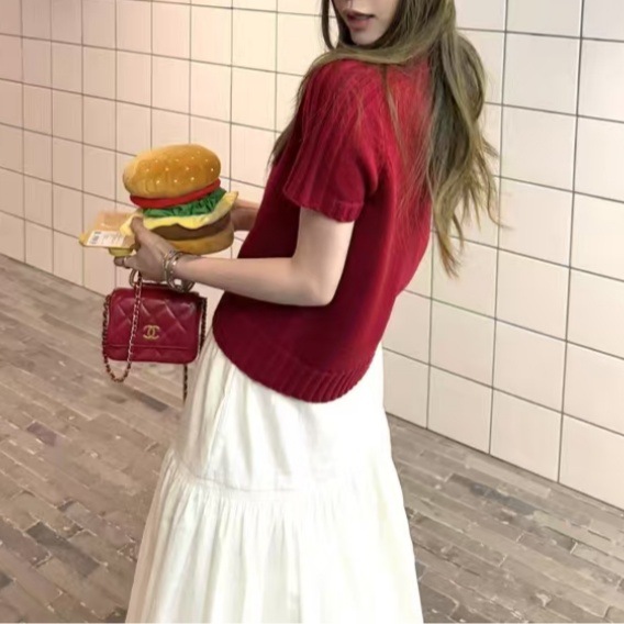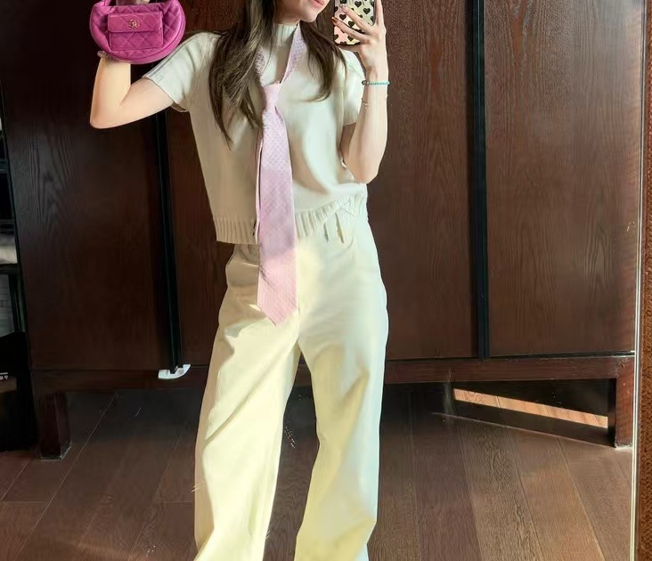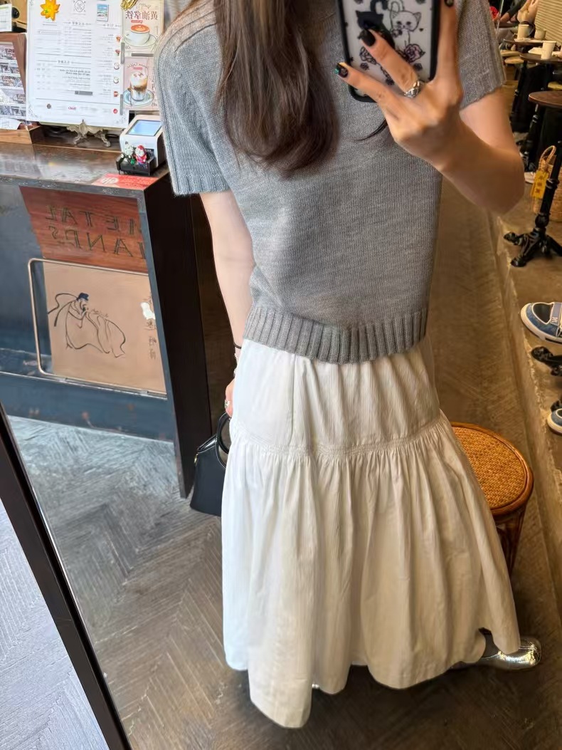 2025 한국식 봄과 여름 신형 하이 엔드 니트 스웨터 반팔 외부 착용 반 높이 목 슬림 스웨터 코트 여자 탑스토어 가기