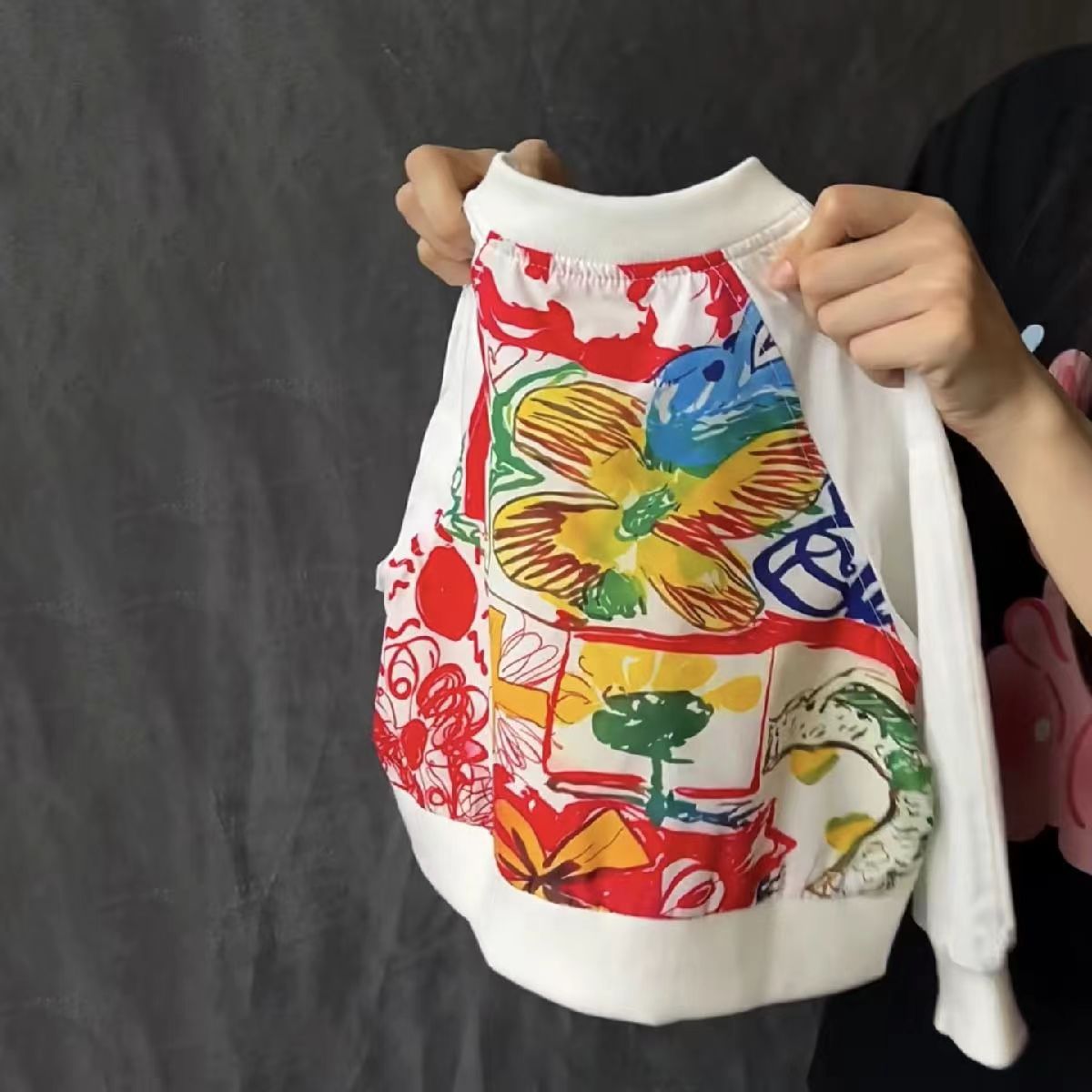 소녀의 낙서 코트 봄과 가을 어린이 러시 옷 아기의 길거리 튀김 세련된 재킷 아기의 유행 화이트 탑