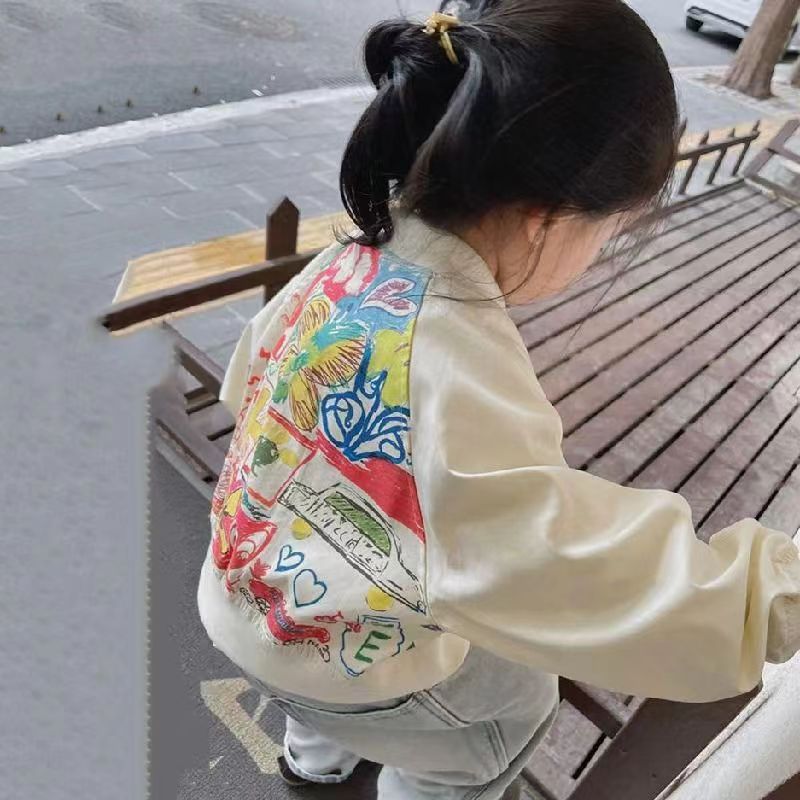 소녀의 낙서 코트 봄과 가을 어린이 러시 옷 아기의 길거리 튀김 세련된 재킷 아기의 유행 화이트 탑스토어 가기