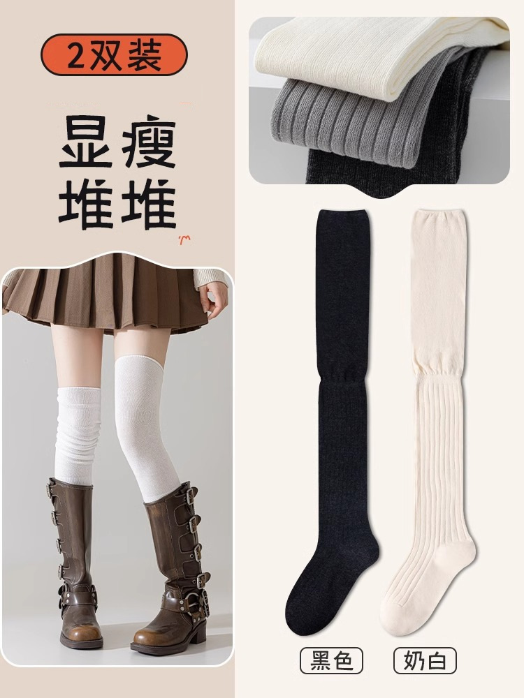 흰색 무릎 길이 스타킹 여성 봄과 가을 여름 종아리 양말 jk 스타킹 긴 부츠 미끄럼 방지 허벅지 양말