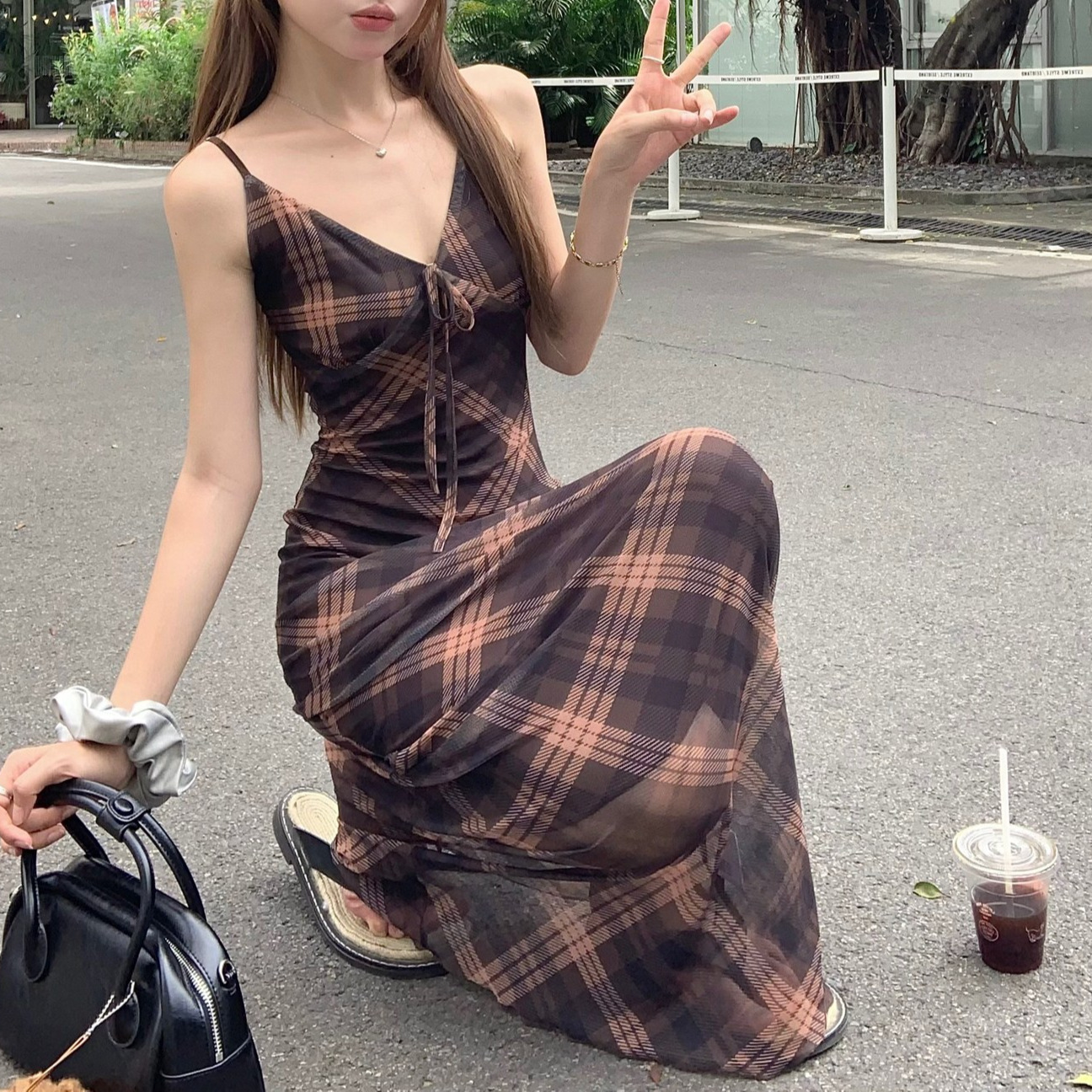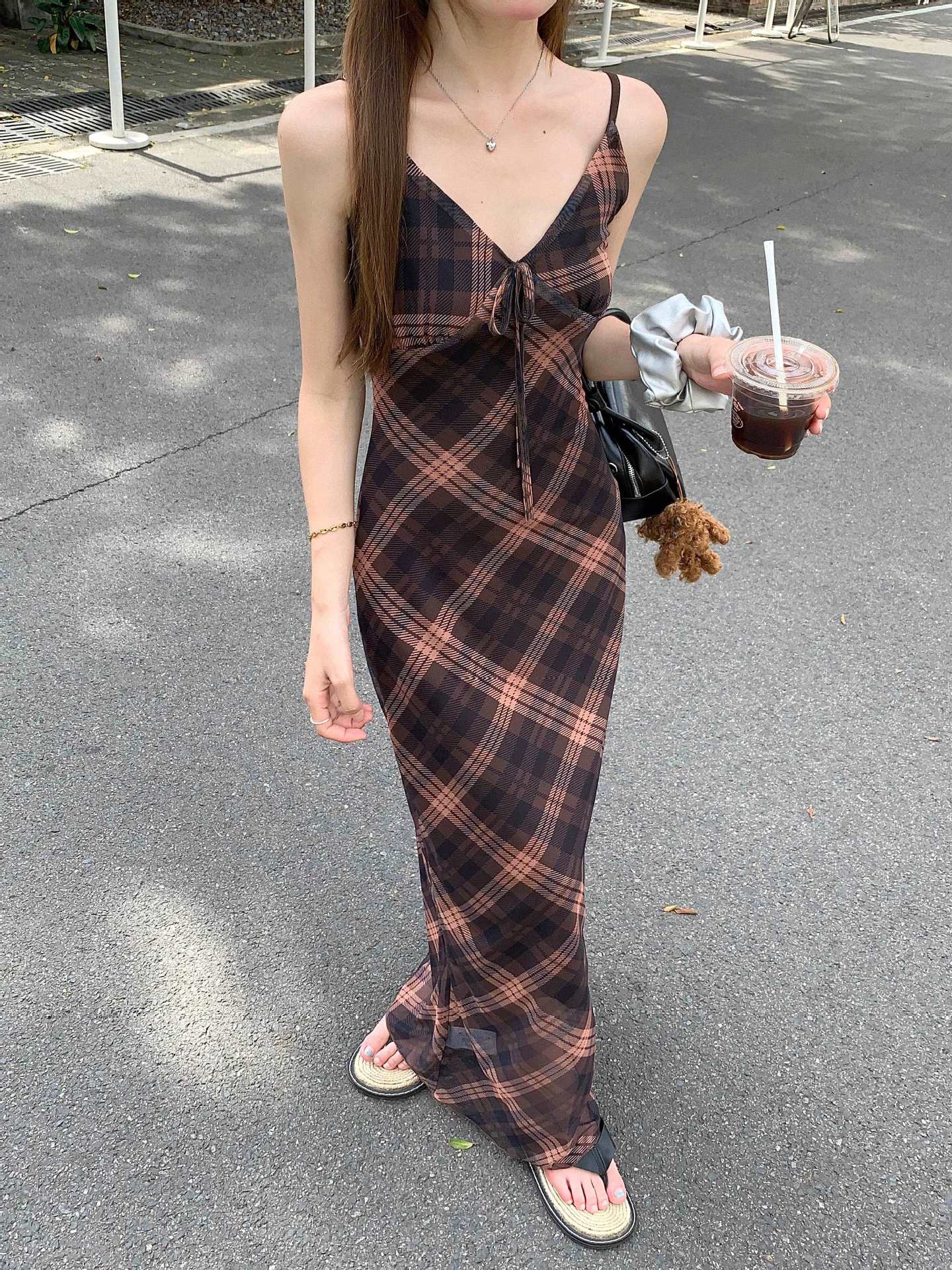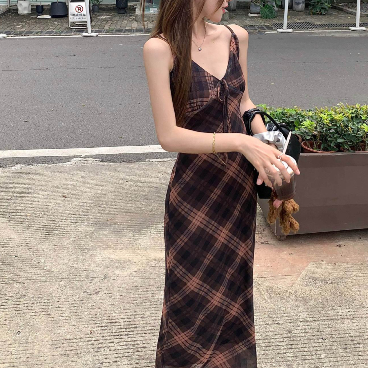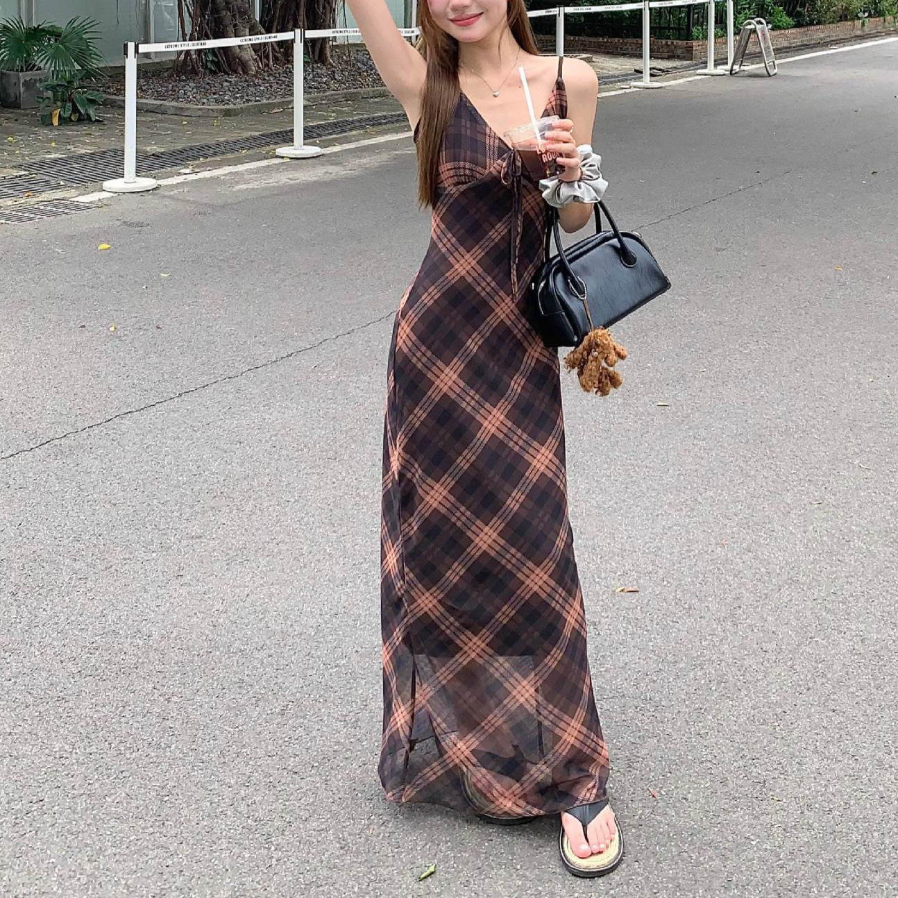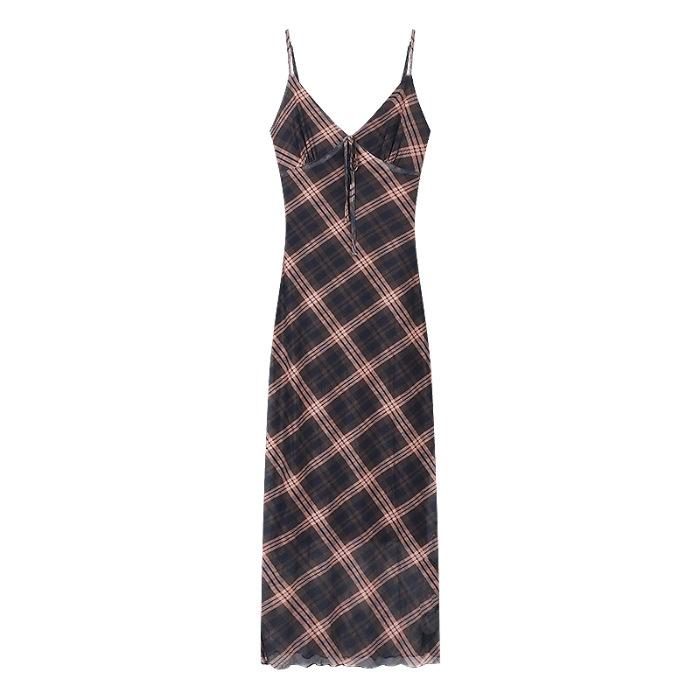 국경 도매 여름 디자인 감각 복고풍 마름모 메쉬 허리 슬리밍 슬림 기질 여성 슬링 원피스스토어 가기