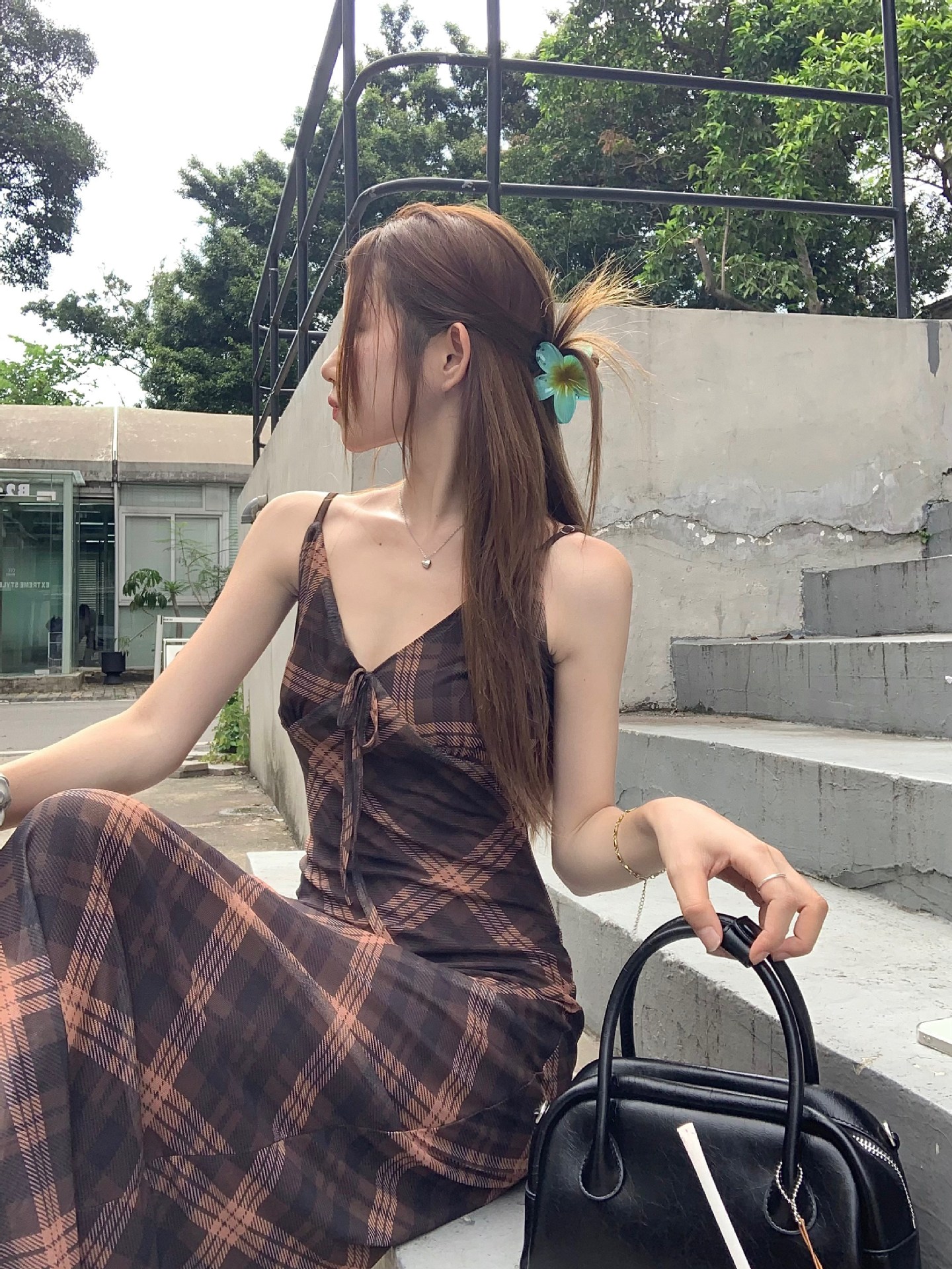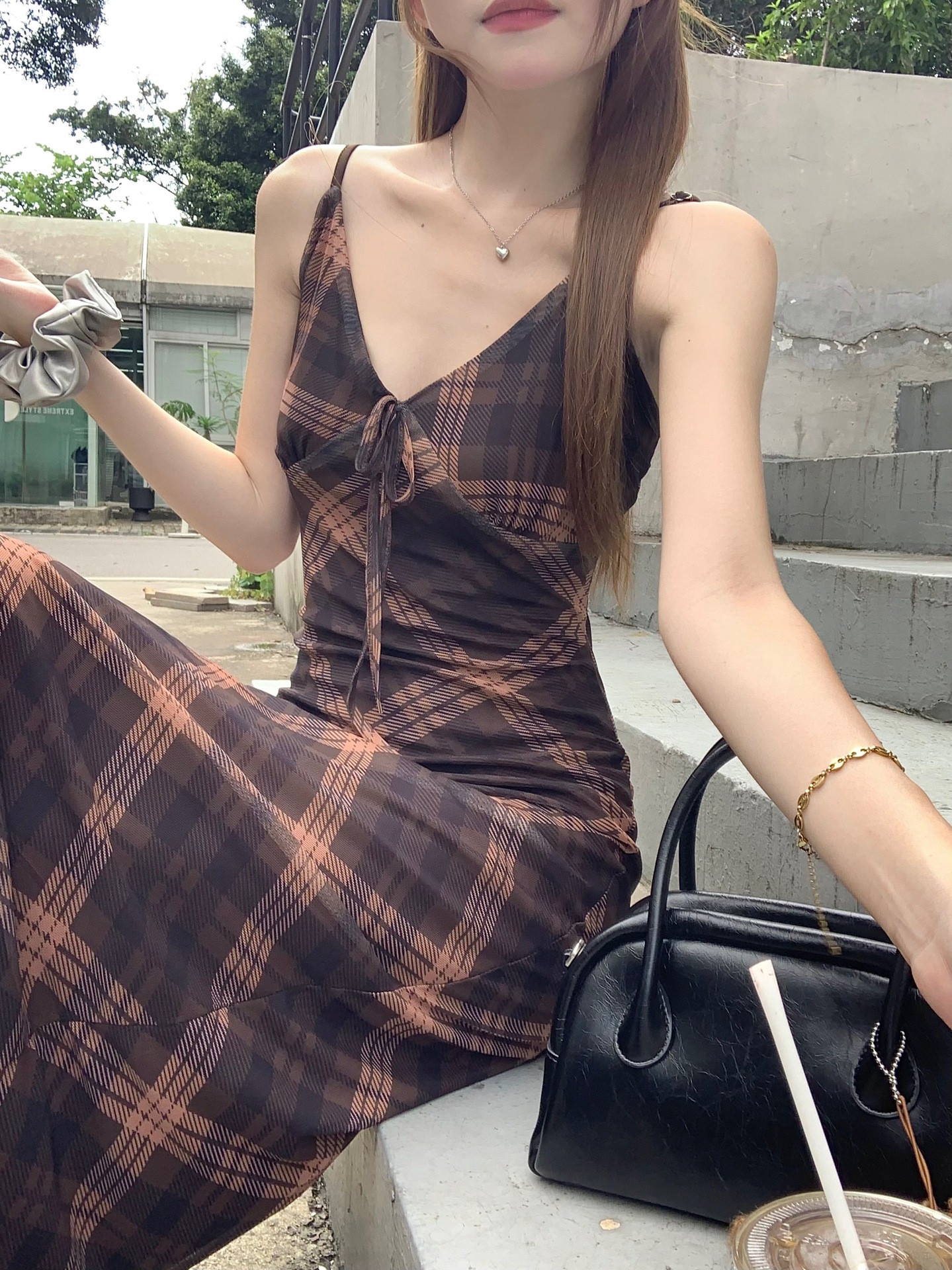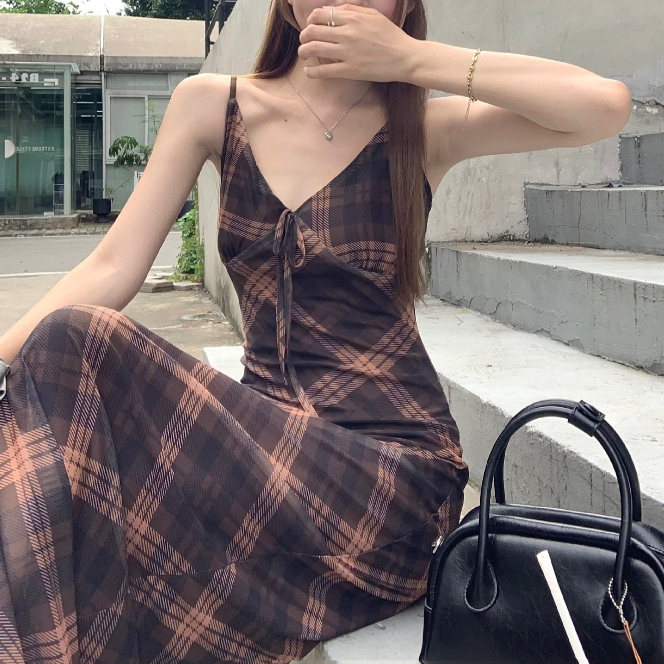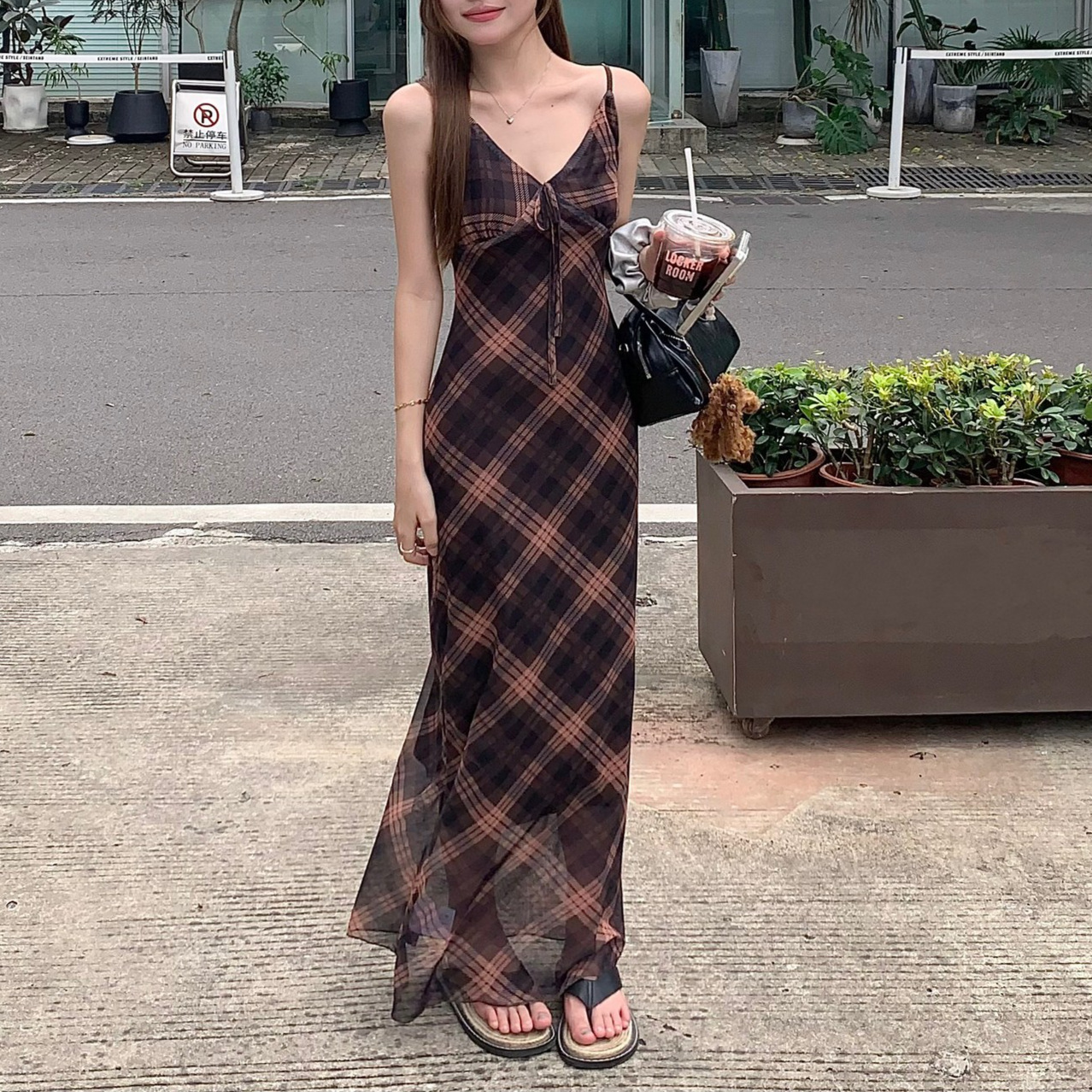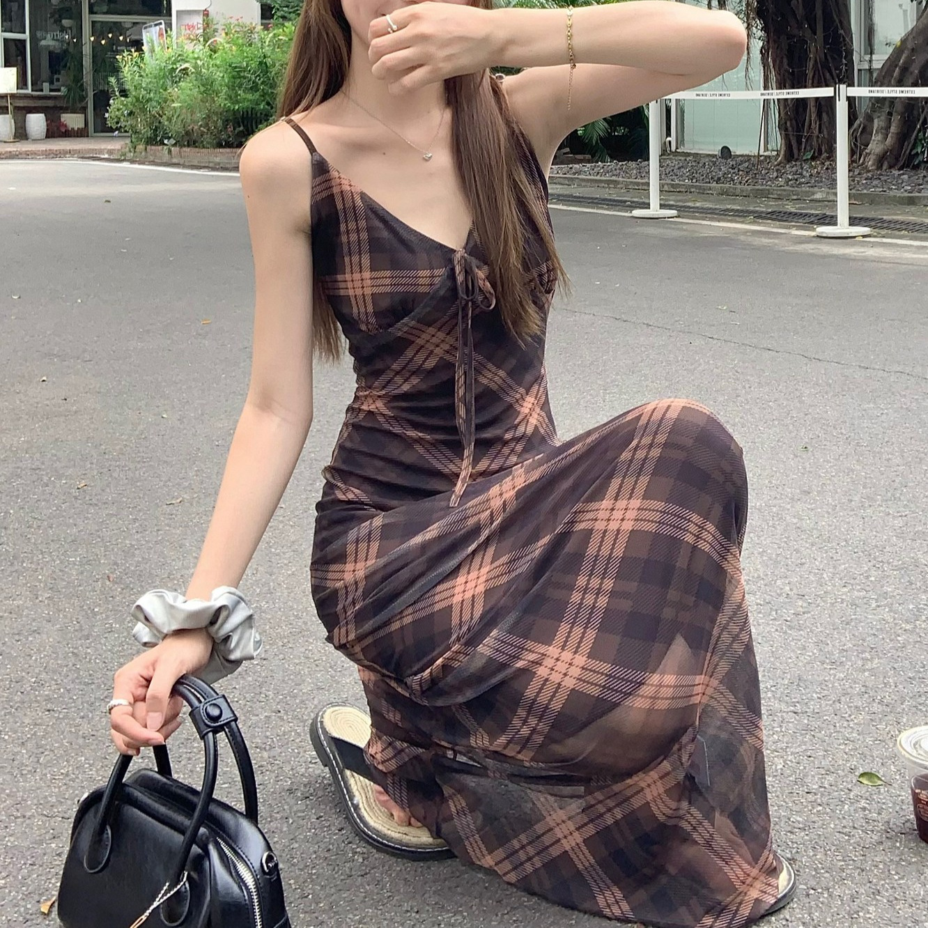 국경 도매 여름 디자인 감각 복고풍 마름모 메쉬 허리 슬리밍 슬림 기질 여성 슬링 원피스스토어 가기