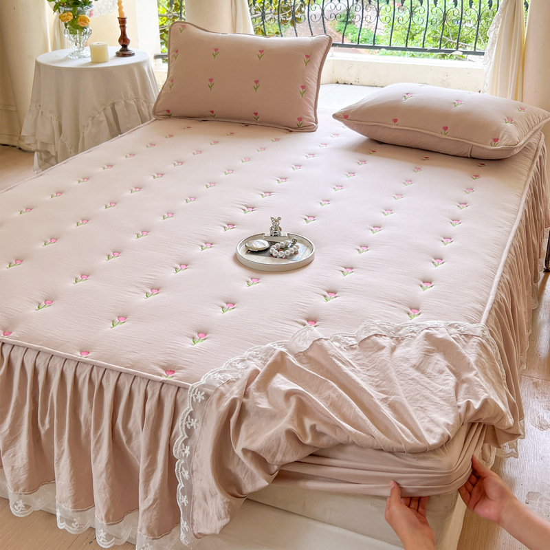 2025 새로운 스타일 세척 면 패딩 레이스 침대 커버 침대 스커트 투인원 두꺼운 침대 커버 시몬스 매트리스 보호 커버스토어 가기