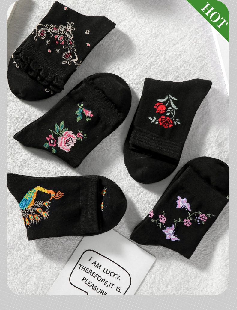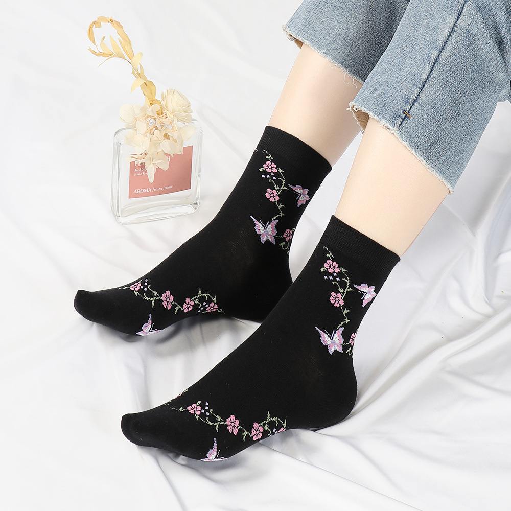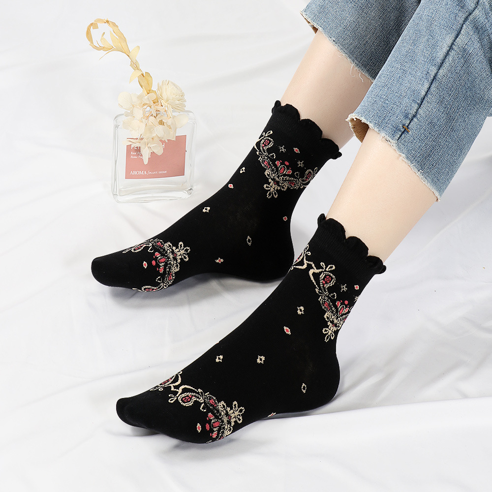 봄과 가을 코튼 양말 엄마 레이스 여성용 꽃 양말 미드 튜브 모든 경기 땀 흡수성 숙녀 도매 미드 튜브 양말스토어 가기