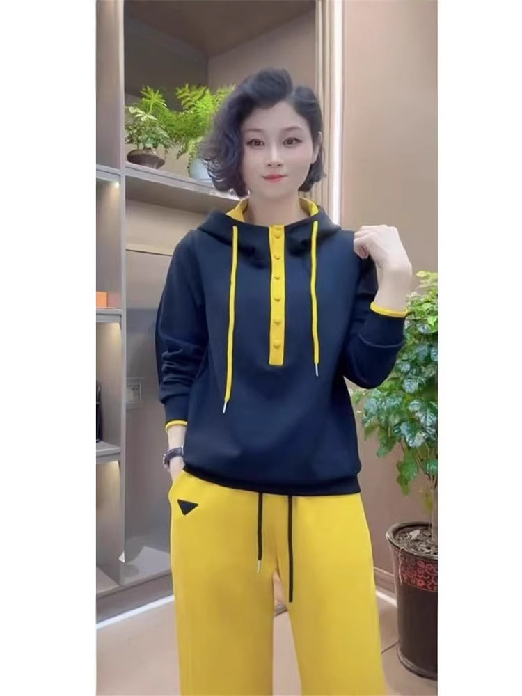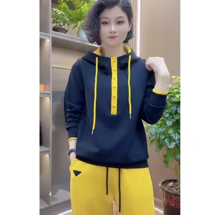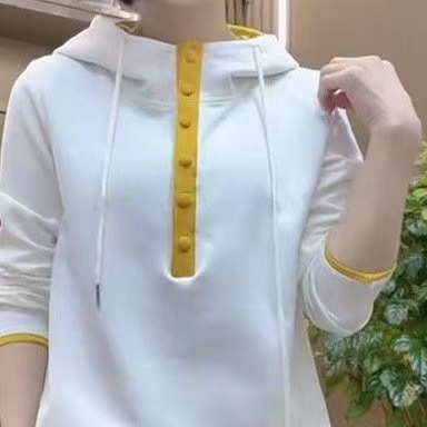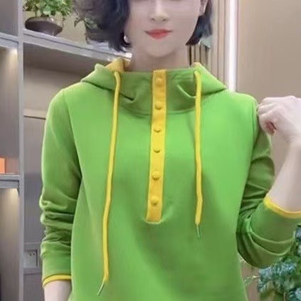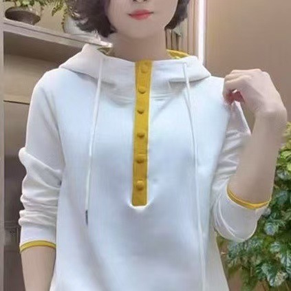 캐주얼 조커 후드 긴 소매 스웨터 여성 봄과 가을 새로운 느슨한 외국 스타일 대비 컬러 후드 탑