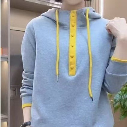 캐주얼 조커 후드 긴 소매 스웨터 여성 봄과 가을 새로운 느슨한 외국 스타일 대비 컬러 후드 탑스토어 가기