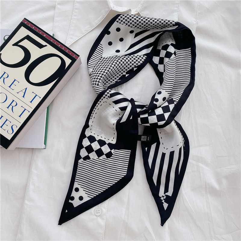 • 【부드러운 실크 스카프●레트로 흑백 도트무늬] 1개