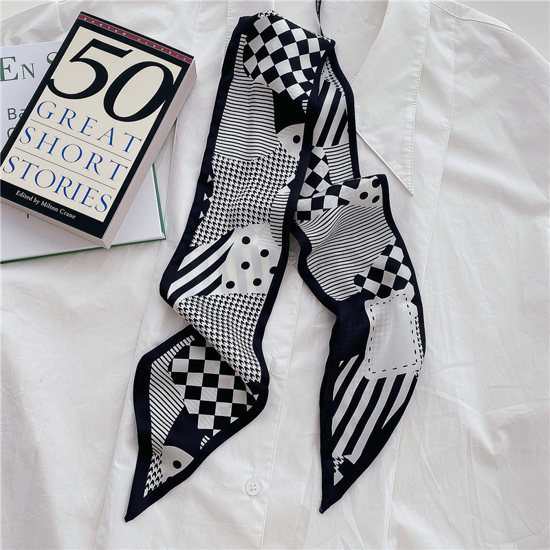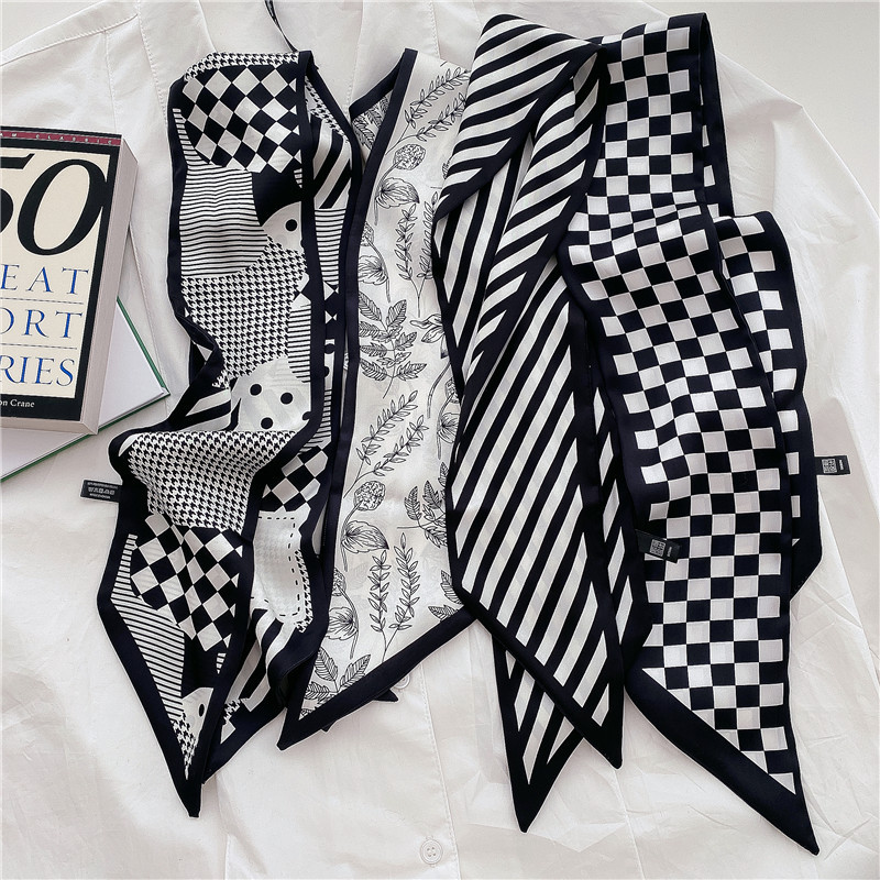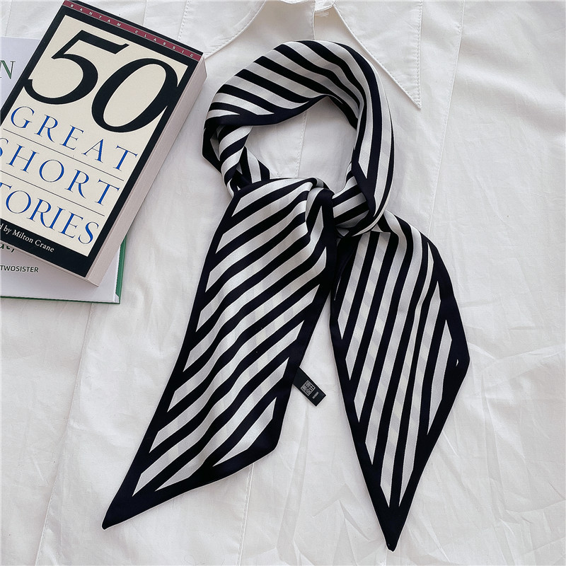 • 【부드러운 실크 스카프●흑백 라인] 1