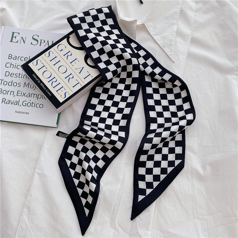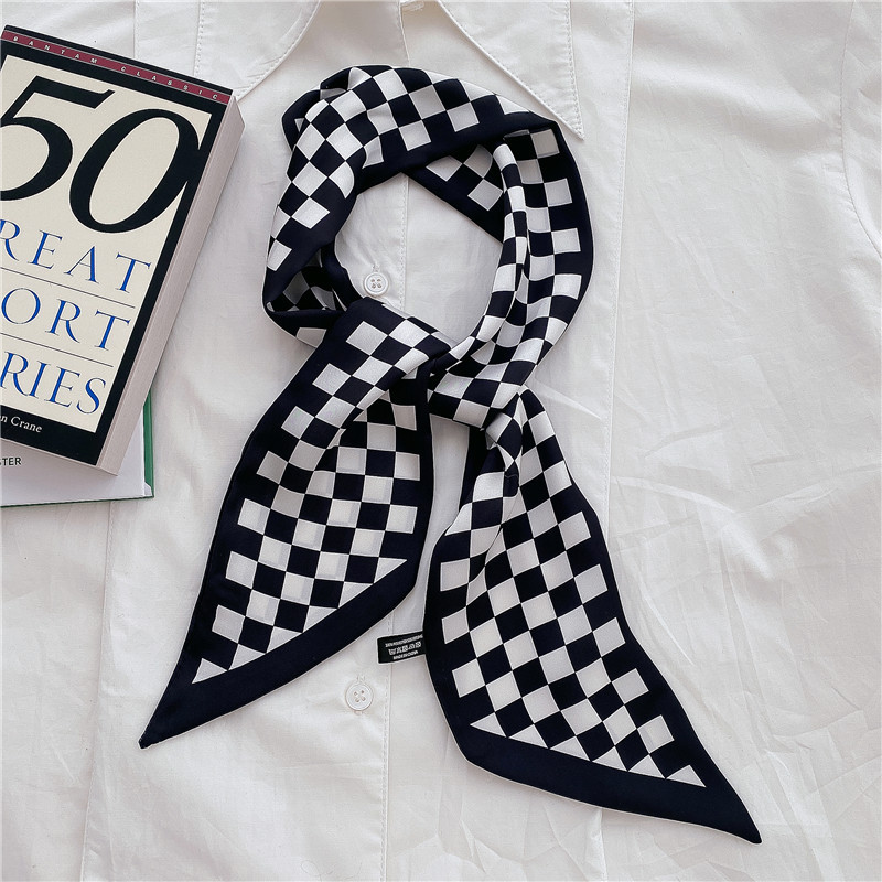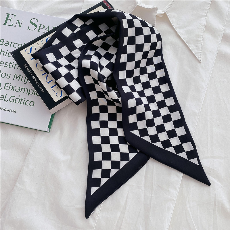 • 【격자무늬 시리즈●블랙] 실크 스카프 1개