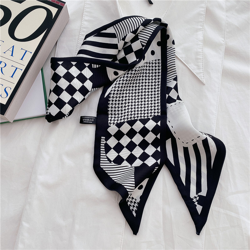 • 【격자무늬 시리즈●블랙 스타일 2] 실크 스카프 1개