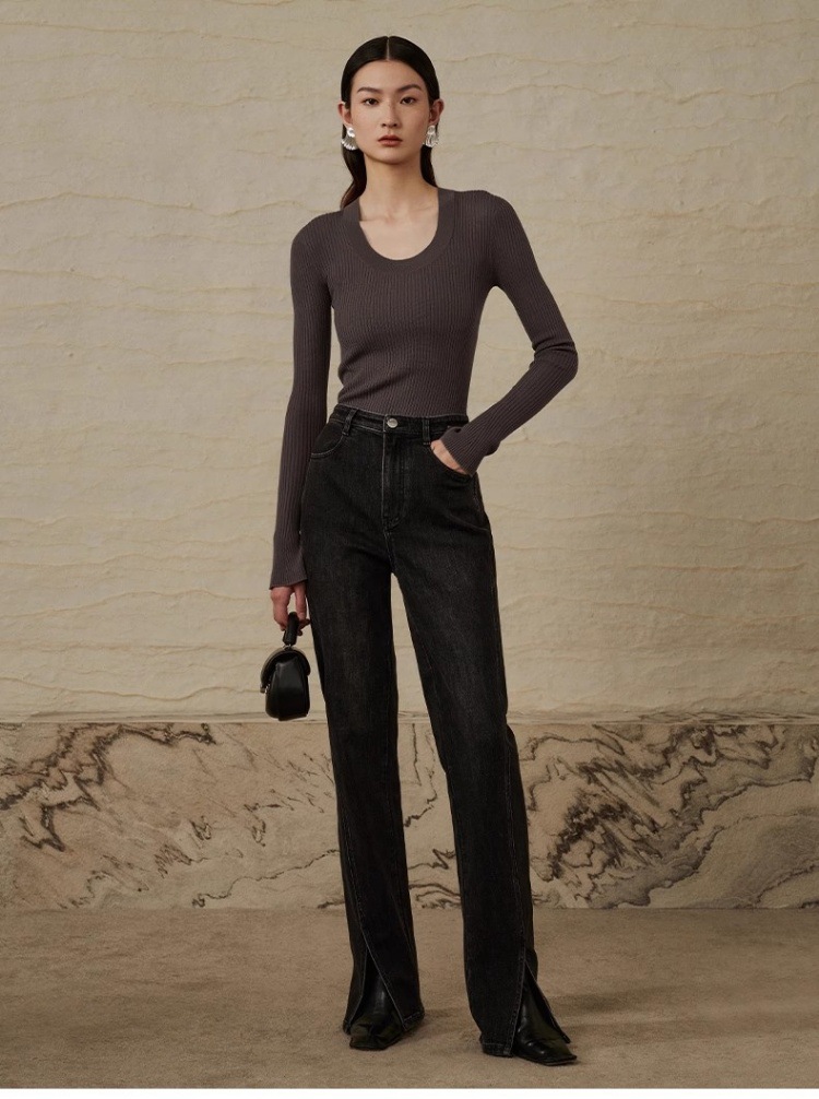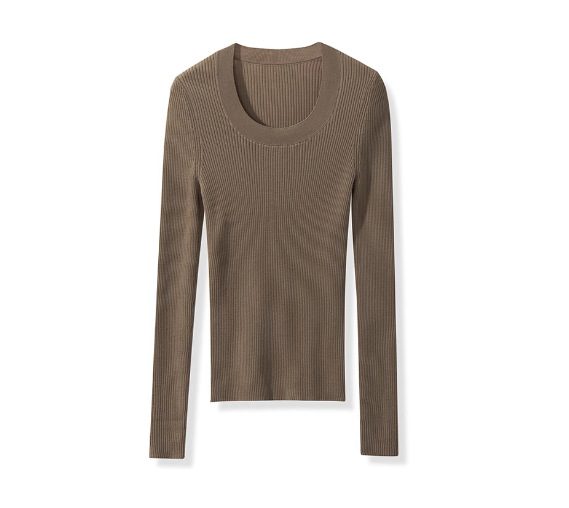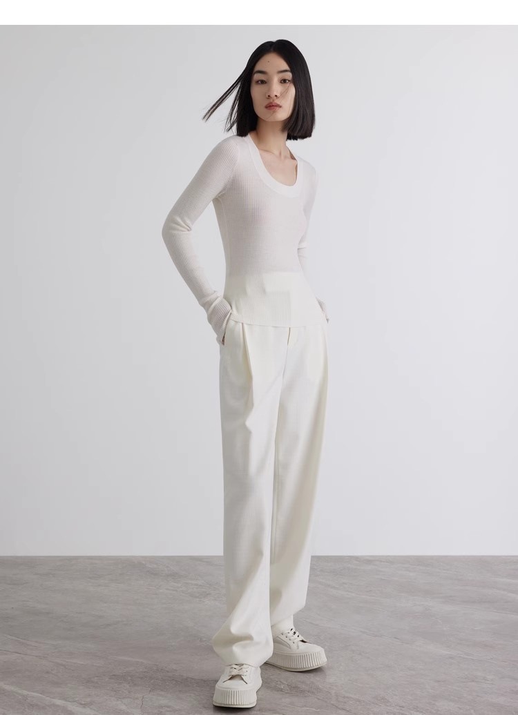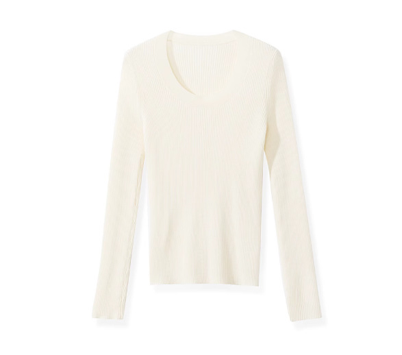 【TEC 기계 세탁 가능 울】48수 양쯔사 U넥 골지 슬림핏 니트 울 베이스 셔츠 여성용스토어 가기