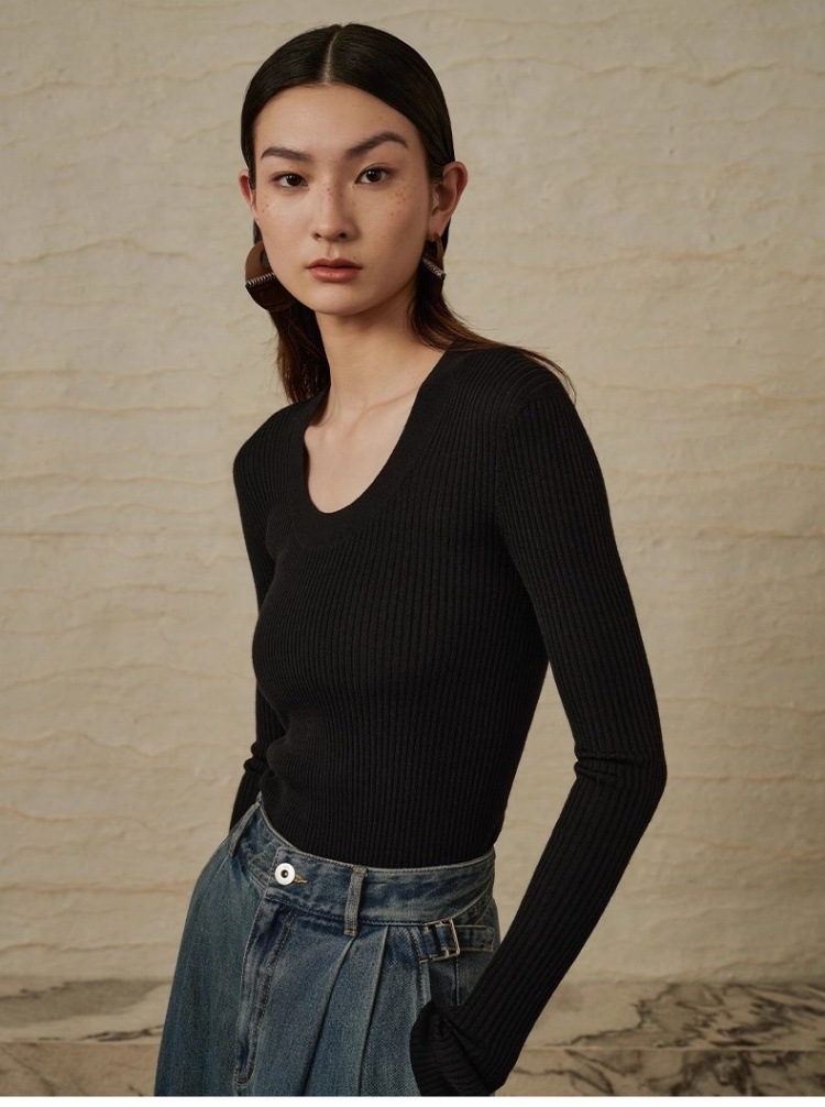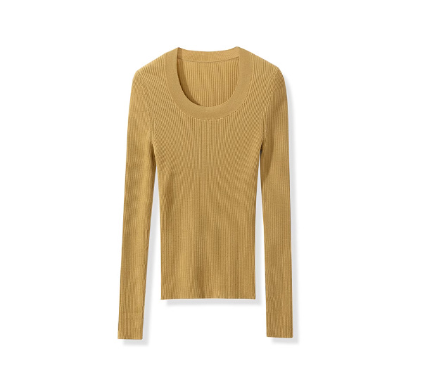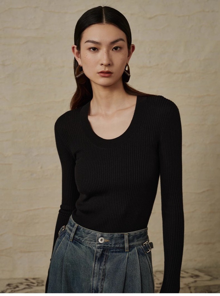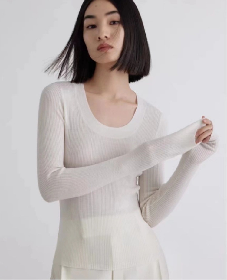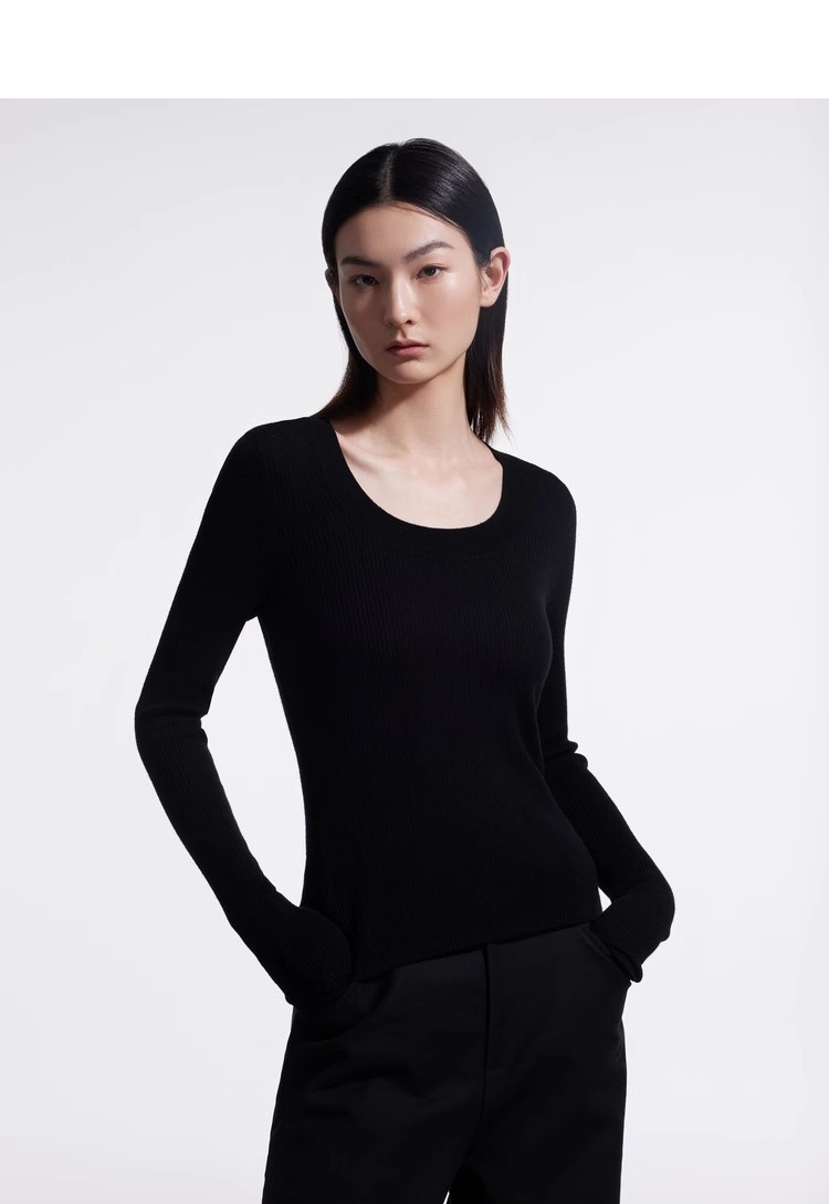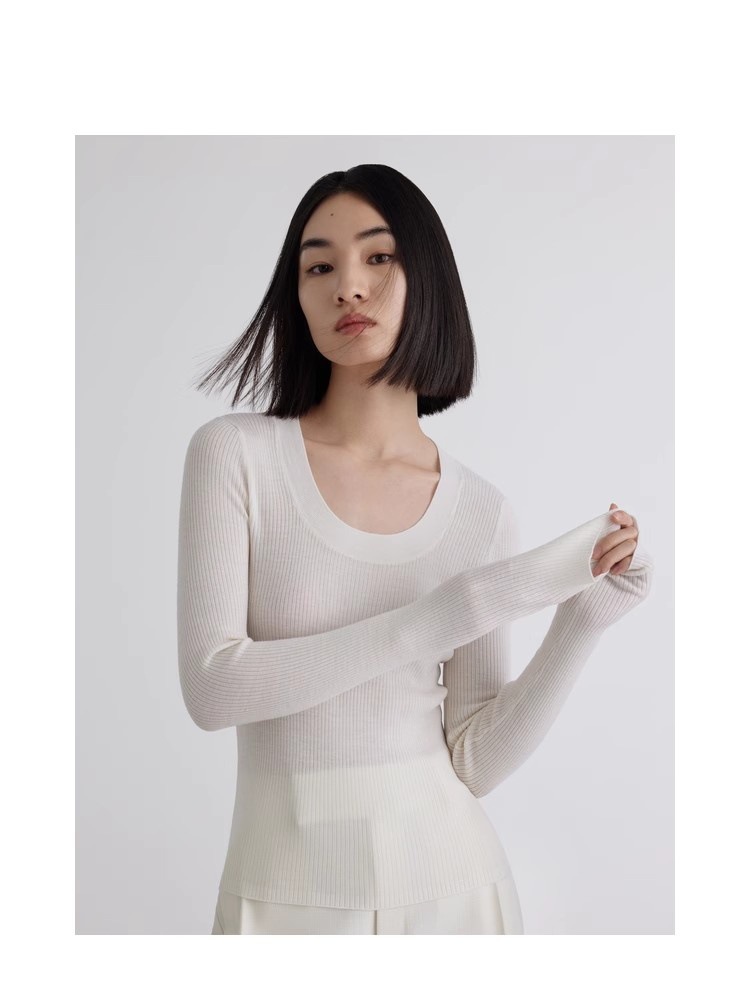 【TEC 기계 세탁 가능 울】48수 양쯔사 U넥 골지 슬림핏 니트 울 베이스 셔츠 여성용