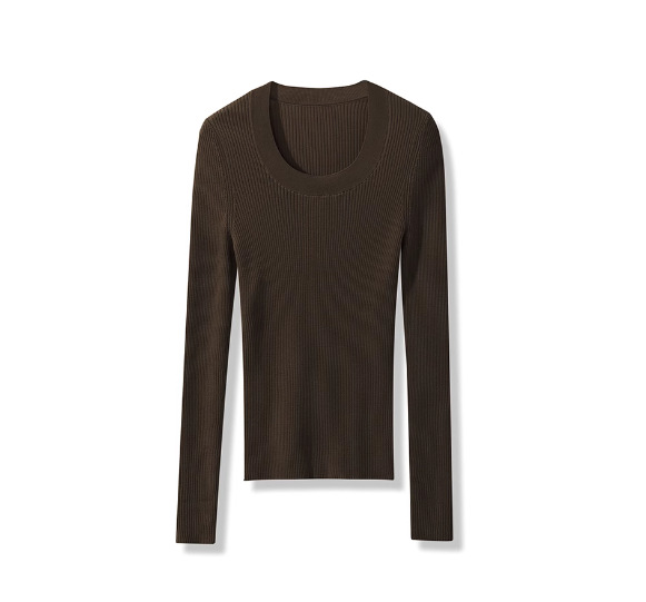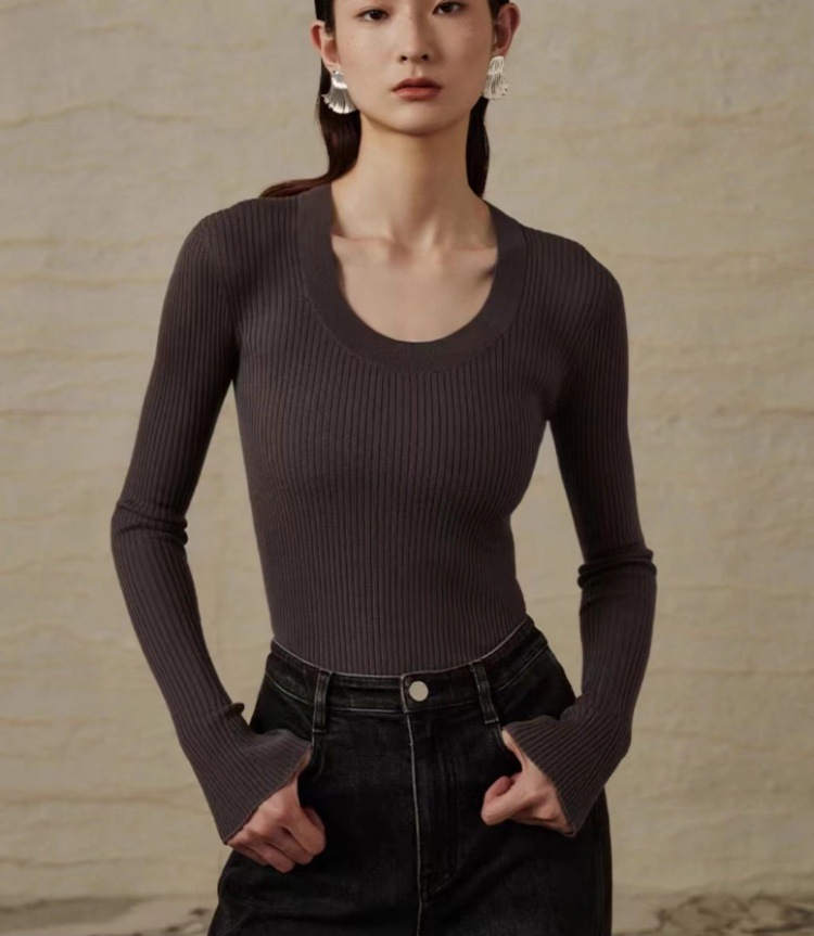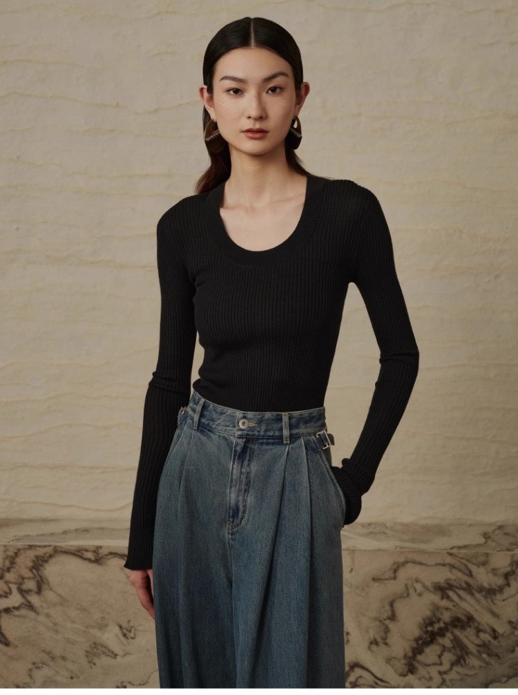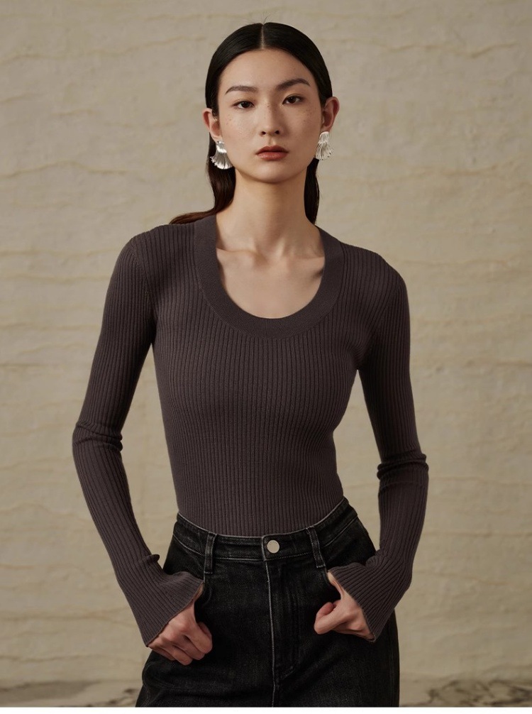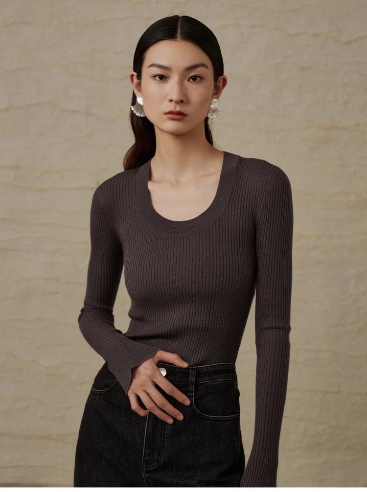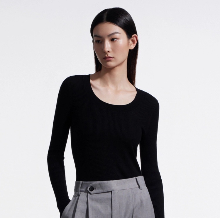 【TEC 기계 세탁 가능 울】48수 양쯔사 U넥 골지 슬림핏 니트 울 베이스 셔츠 여성용