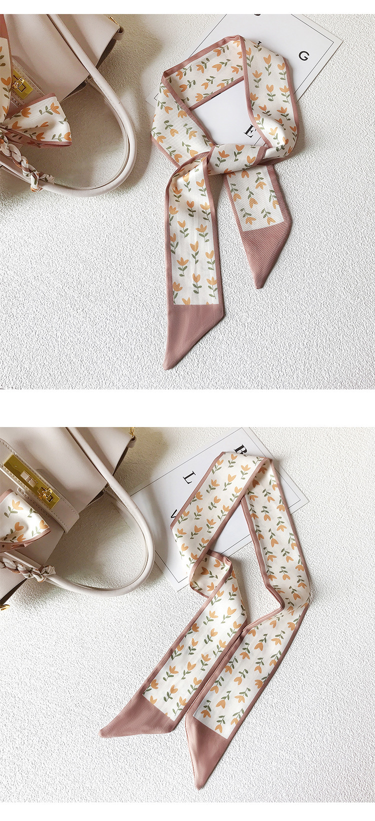 도매 긴 실크 스카프 리본 헤어 벨트 헤어 벨트 작은 샤넬 스타일 여성 넥타이 헤어 리본 장식 작은 긴 헤어 로프 가방