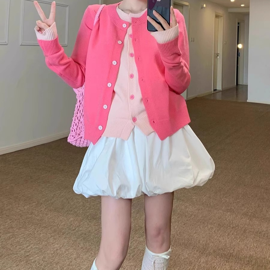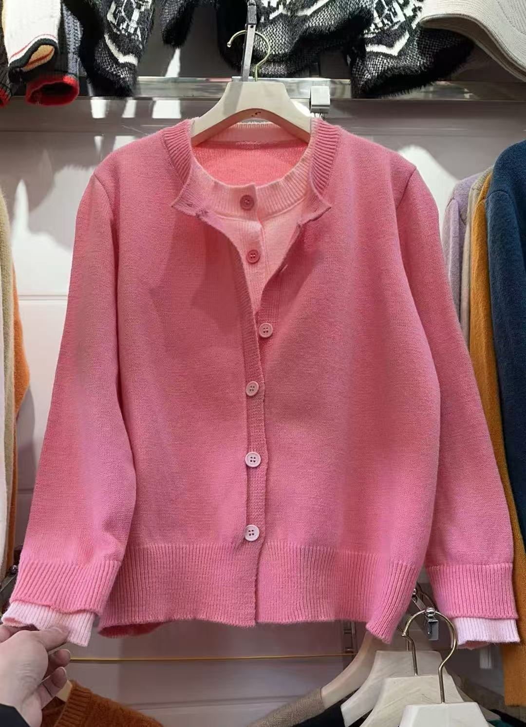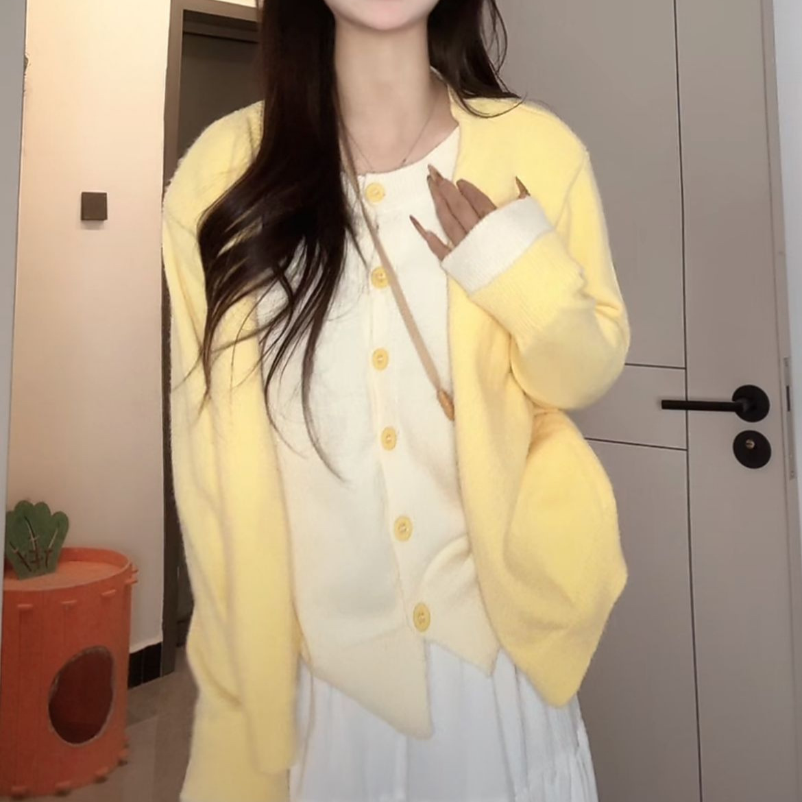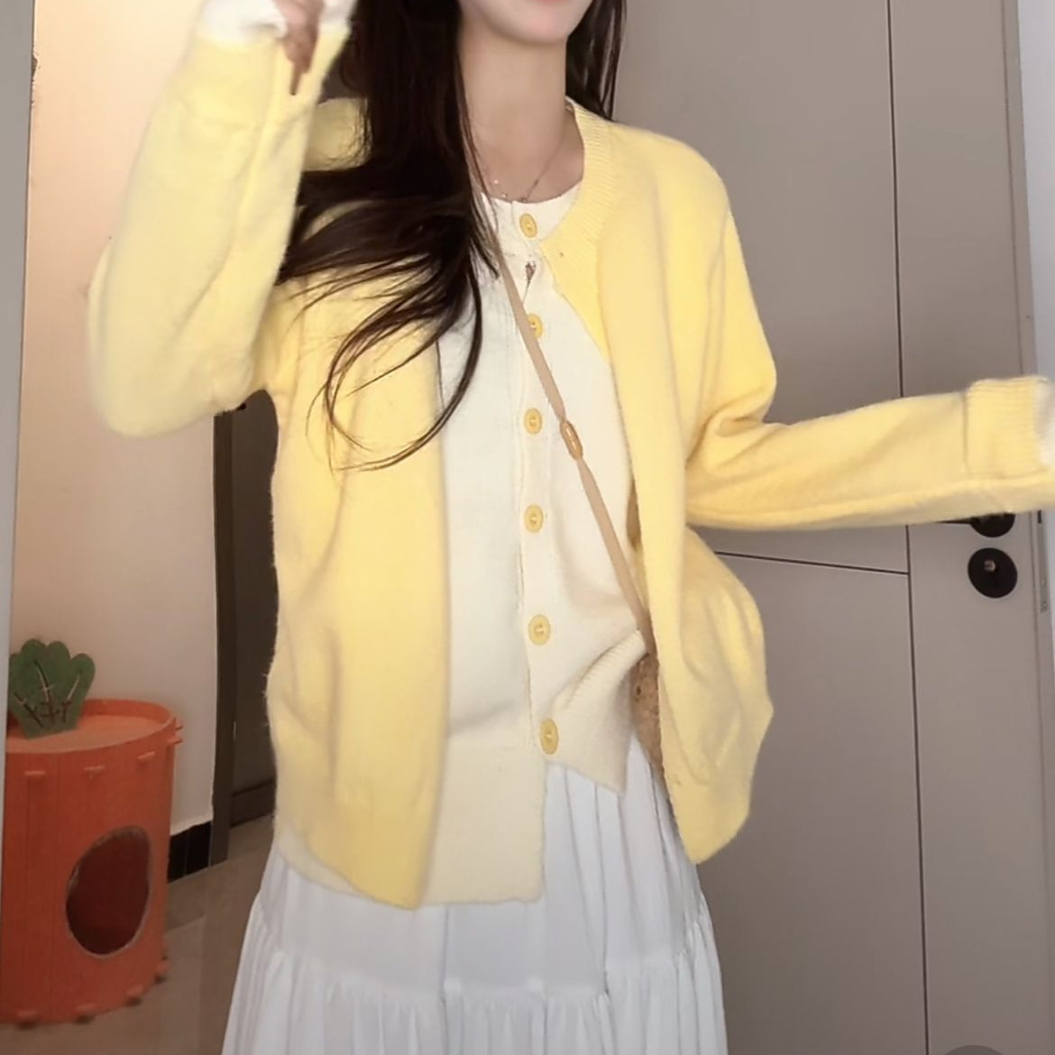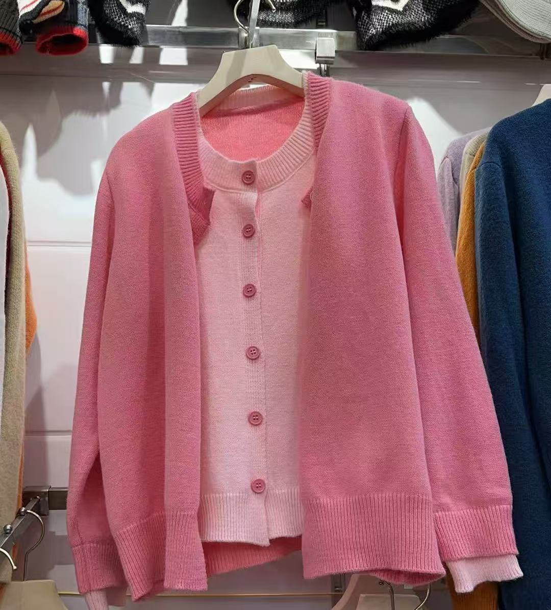 YUNS 스위트 스타일 캔디 컬러 가짜 투피스 스웨터 가디건 여성 가을, 겨울 부드러운 밀랍 스타일 스웨터 재킷 슬리밍 탑