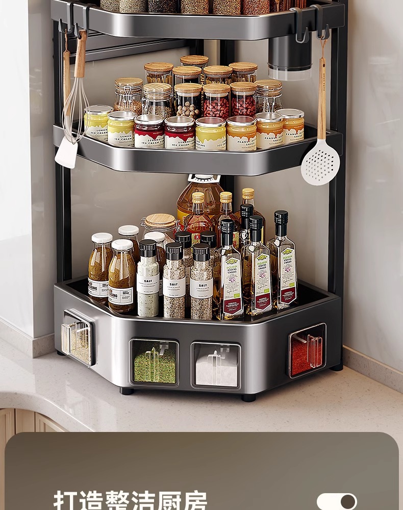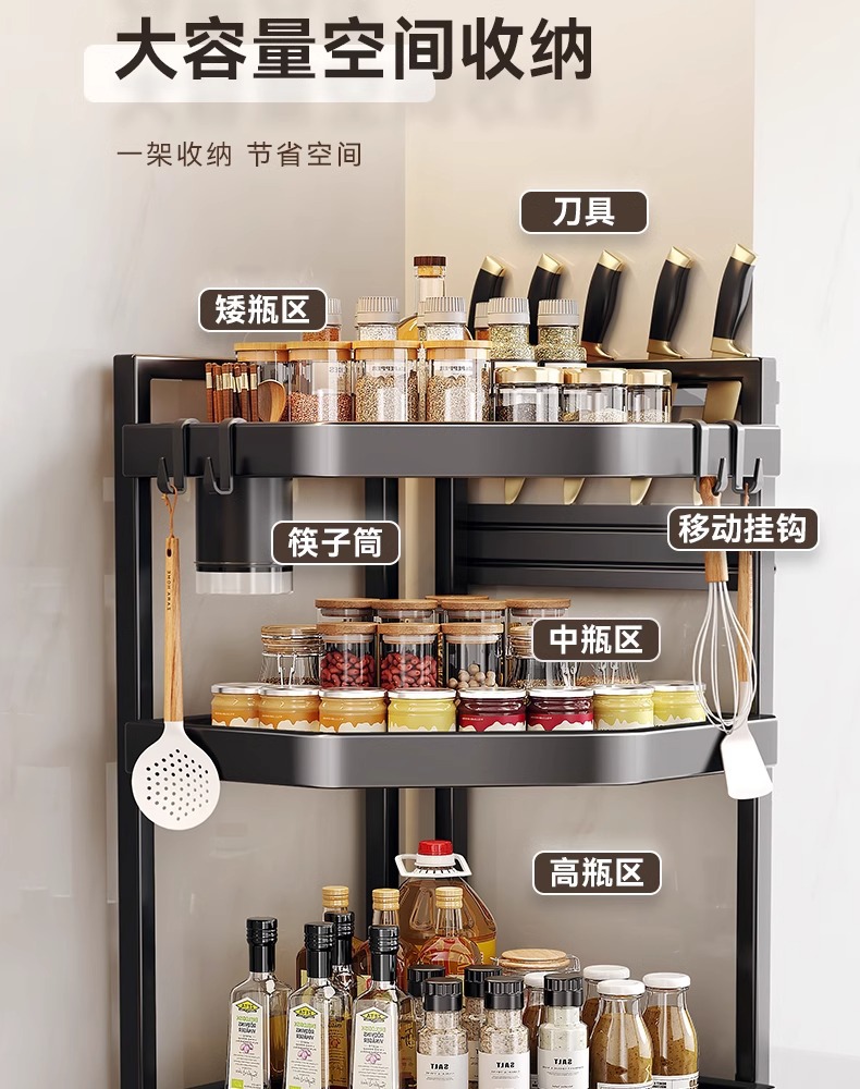 • [혁신적인 업그레이드] 대형 3단 + 양념통 + 칼홀더