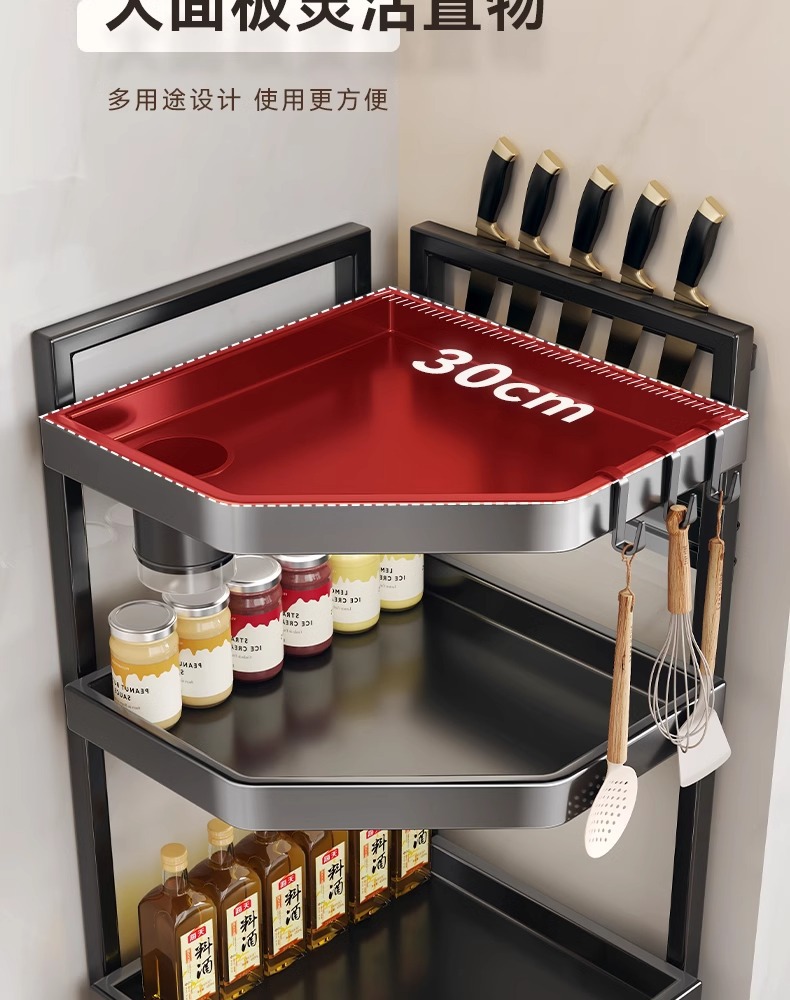 주방 보관 랙 카운터 탑 코너 삼각형 양념 걸이 코너 펜던트 코너 보관 벽 교수형 다기능 선반
