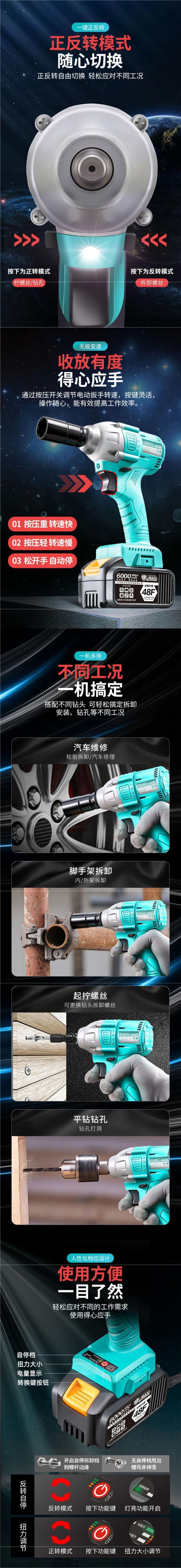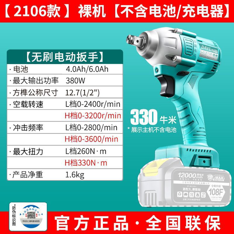 독일 브러시리스 대형 토크 아트 전기 렌치 발판 목공 자동차 수리 충전 공기 대포 범용 전기 렌치 베어 메탈스토어 가기