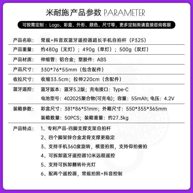 새로운 P325 P320 듀얼 원격 제어 휴대 전화 셀카 스틱 다기능 블루투스 셀카 스틱 네발 라이브 방송 스탠드스토어 가기