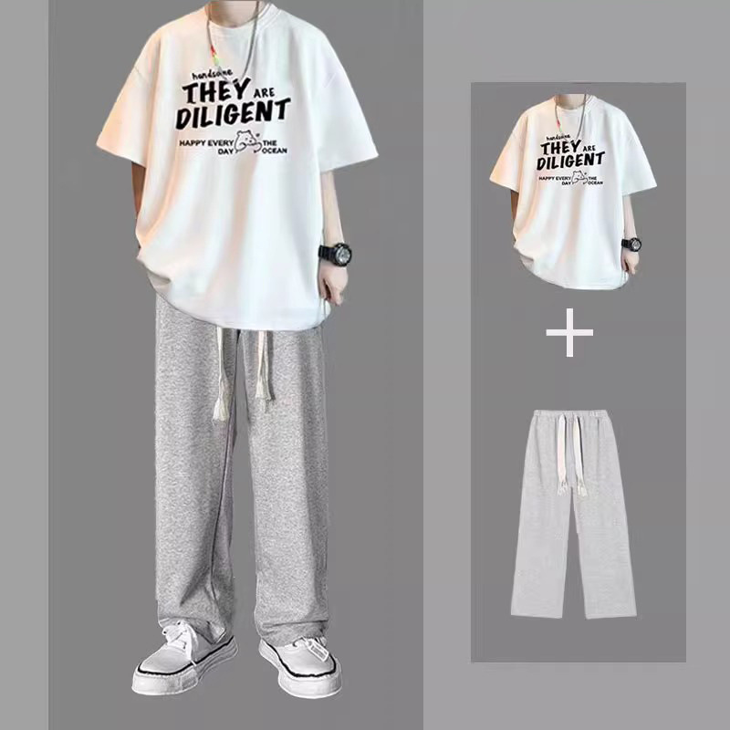 여름 반팔 티셔츠 남성용 세트 핸섬 올 매치 트렌디 캐주얼 투피스 세트 학생용 바지스토어 가기