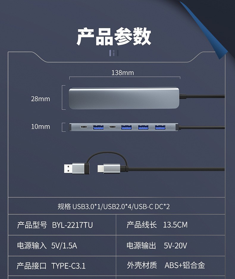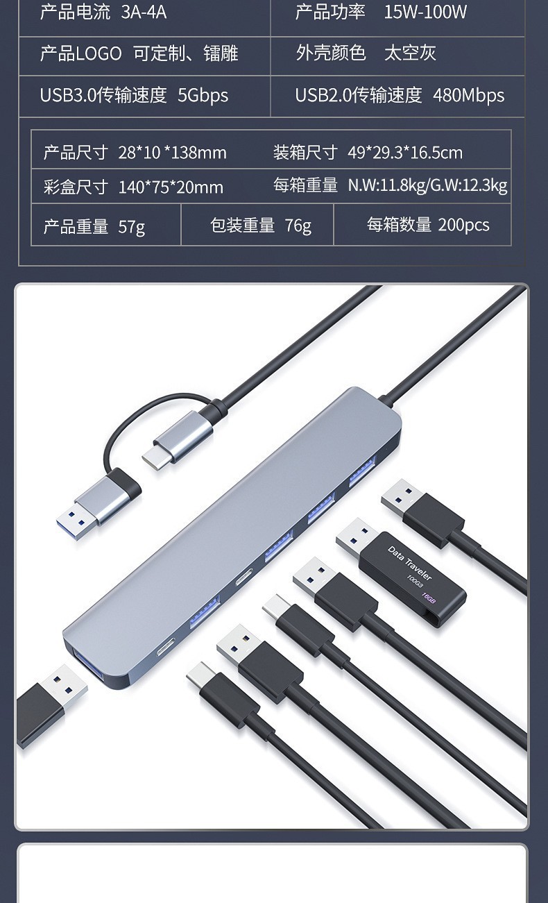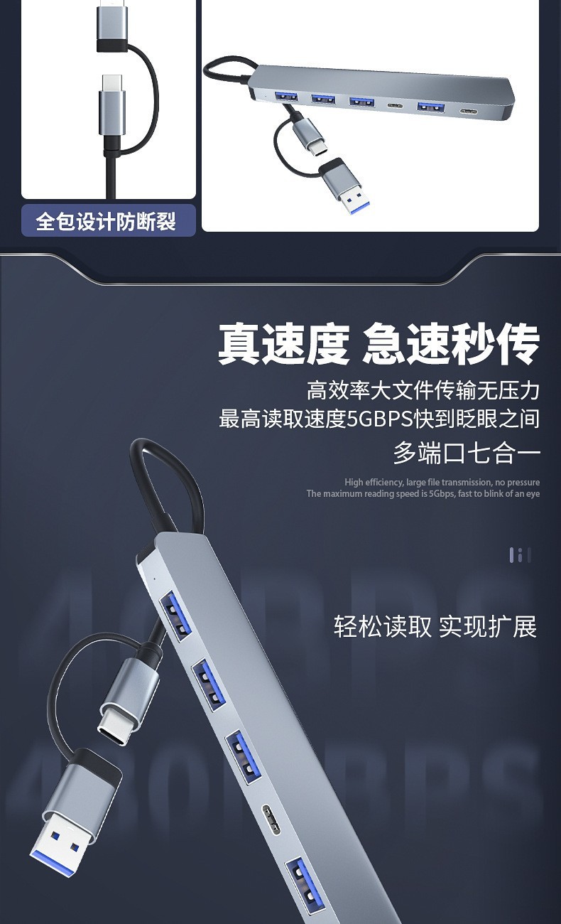 • 2-in-1 7포트 usb3.0+2.0*4+pd:5w+usb-c 데이터