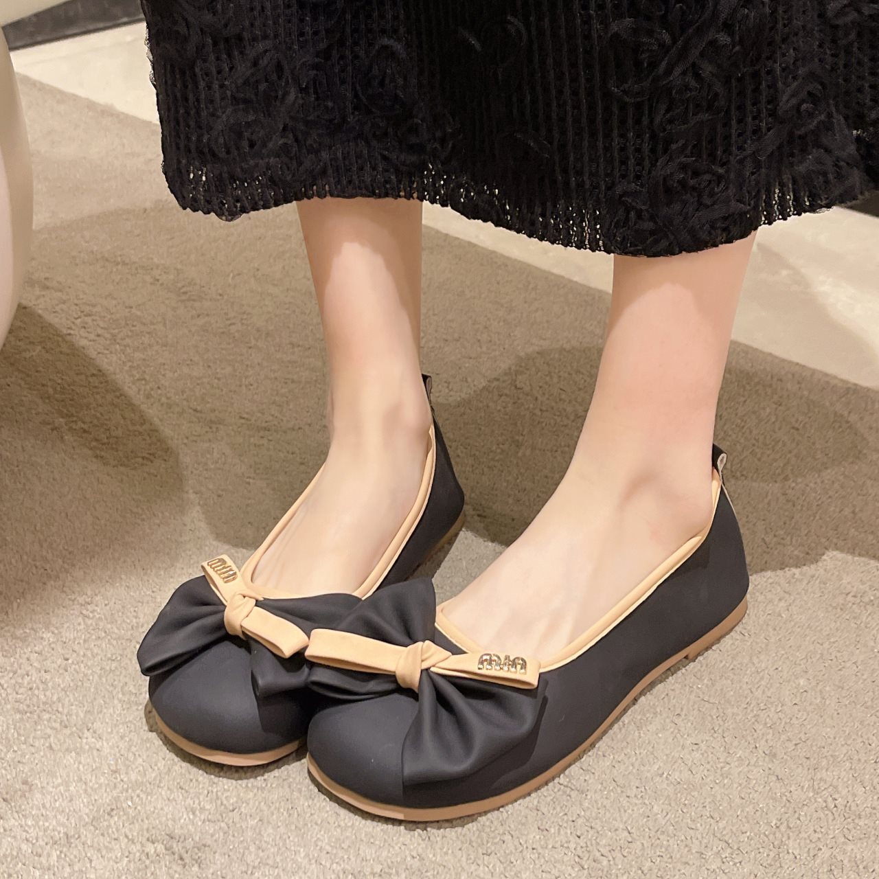 얕은 입 임산부 신발 부드러운 바닥 플랫 하단 경량 라운드 헤드 활 싱글 새로운 스타일 신발 여성 여름 중년 어머니 신발
