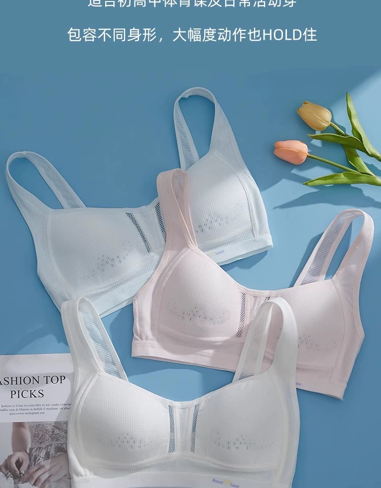 중학생 발달 속옷 스포츠 충격 방지 사춘기 소녀 시니어 여고생 브라 조끼 얇은 여름