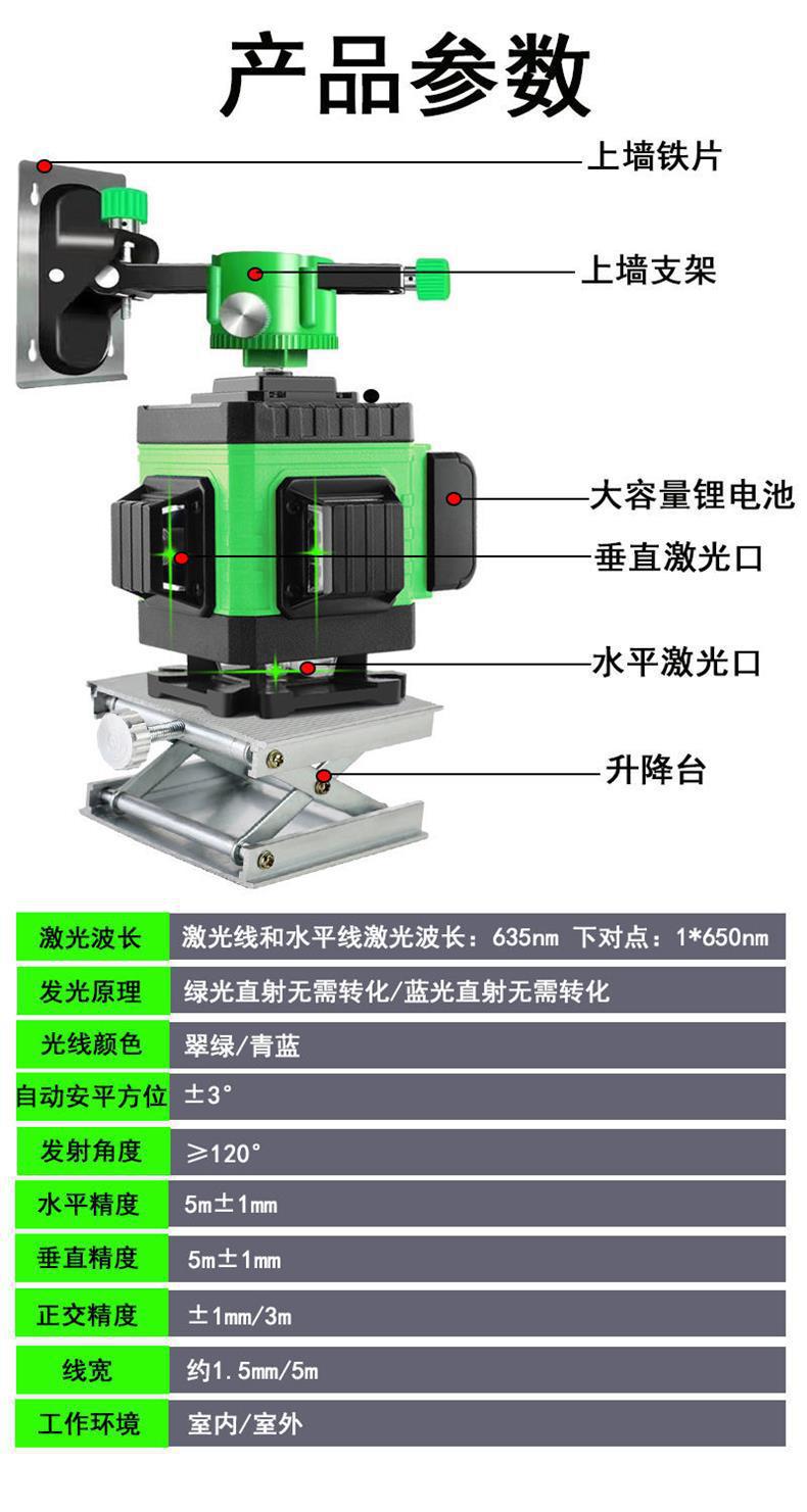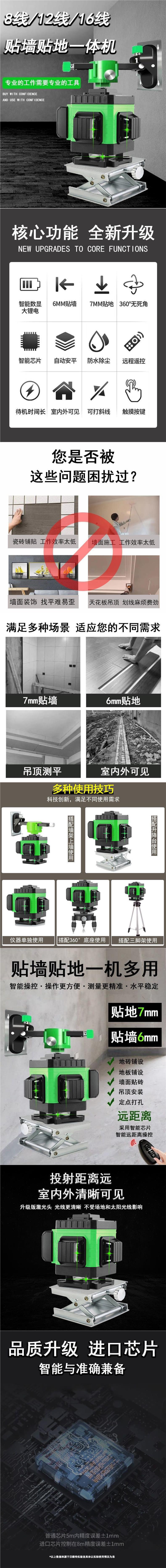 적외선 레벨 녹색 레이저 워터 미터 8 라인 12 라인 16 라인 고정밀 벽 투영 기기스토어 가기