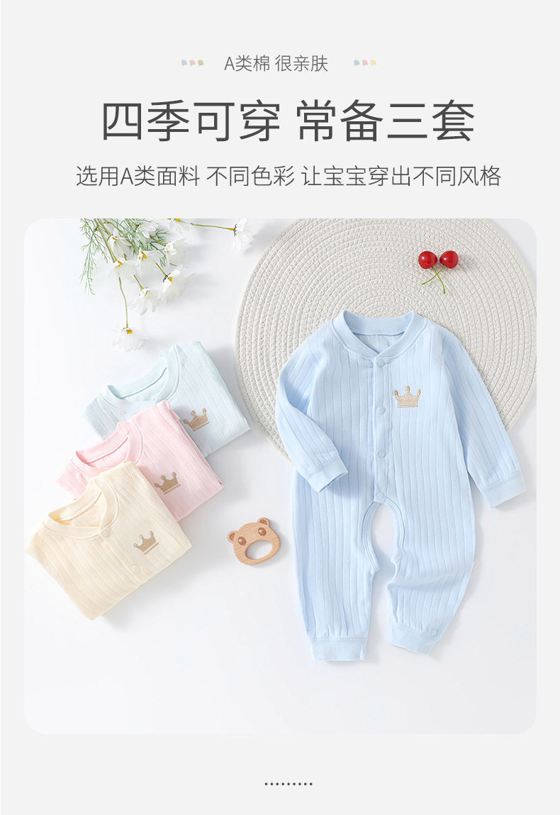 클래스 A 아기 봄과 가을 얇은 오픈 점프 수트 신생아 긴팔 바지 면 잠옷 아기 통기성 등산 세트스토어 가기